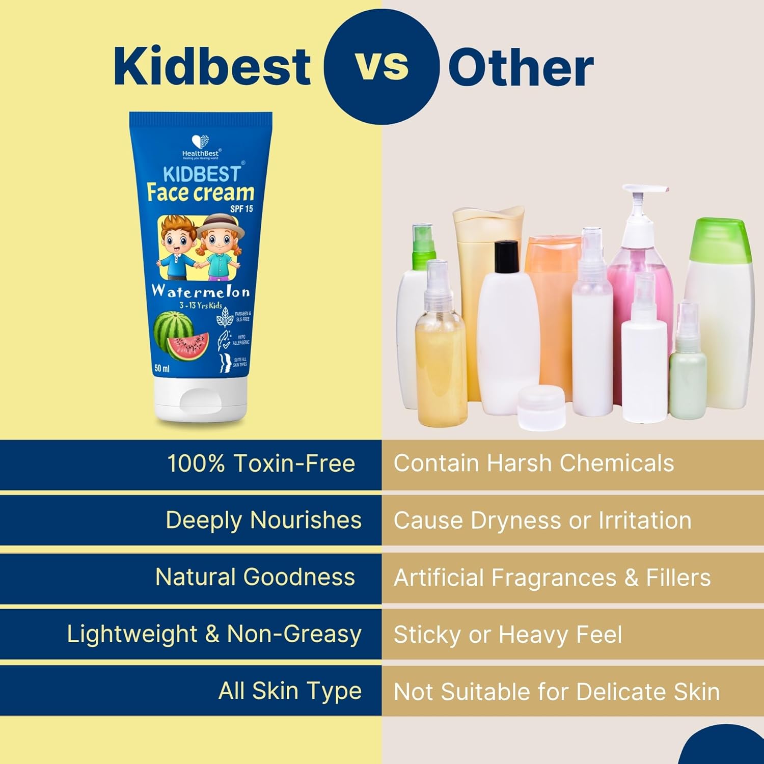 مغذي وترطيب غني بفيتامين ه : فيتامين E، الغني بعوامل الحماية، يوفر الرطوبة والتغذية لبشرة الطفل ويحافظ على صحتها وقوتها..