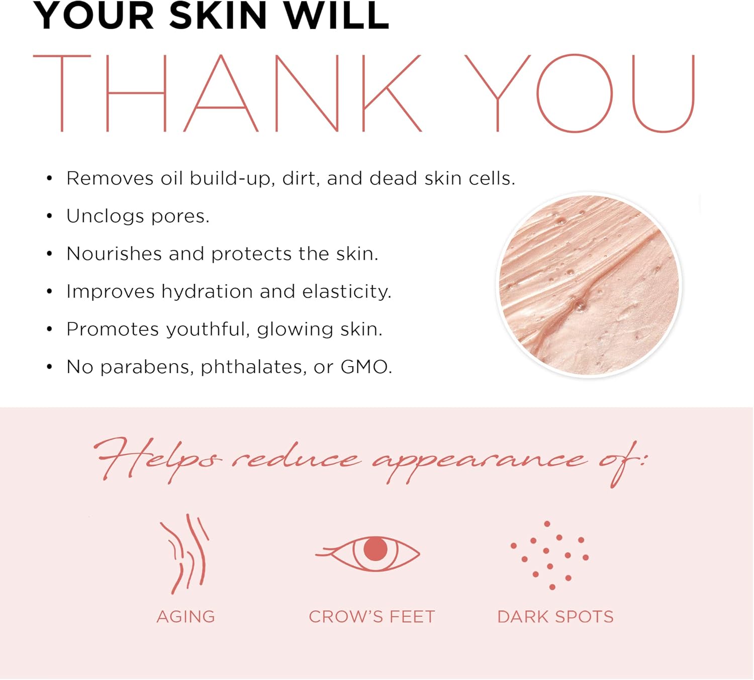 يعمل علاجنا المرطب الفاخر باللون الذهبي الوردي على تقشير بشرتك بعمق ويزيل تراكم الزيوت والأوساخ وخلايا الجلد الميتة والشوائب. يعمل زيت الورك الورد على ترطيب وتنعيم بشرتك، مما يساعد على تنعيم مظهر الخطوط الدقيقة والتجاعيد. بمجرد الانتهاء، يتقشر القناع الخاص بنا بسهولة للكشف عن بشرة أكثر نعومة ومتجددة ومنغمة.