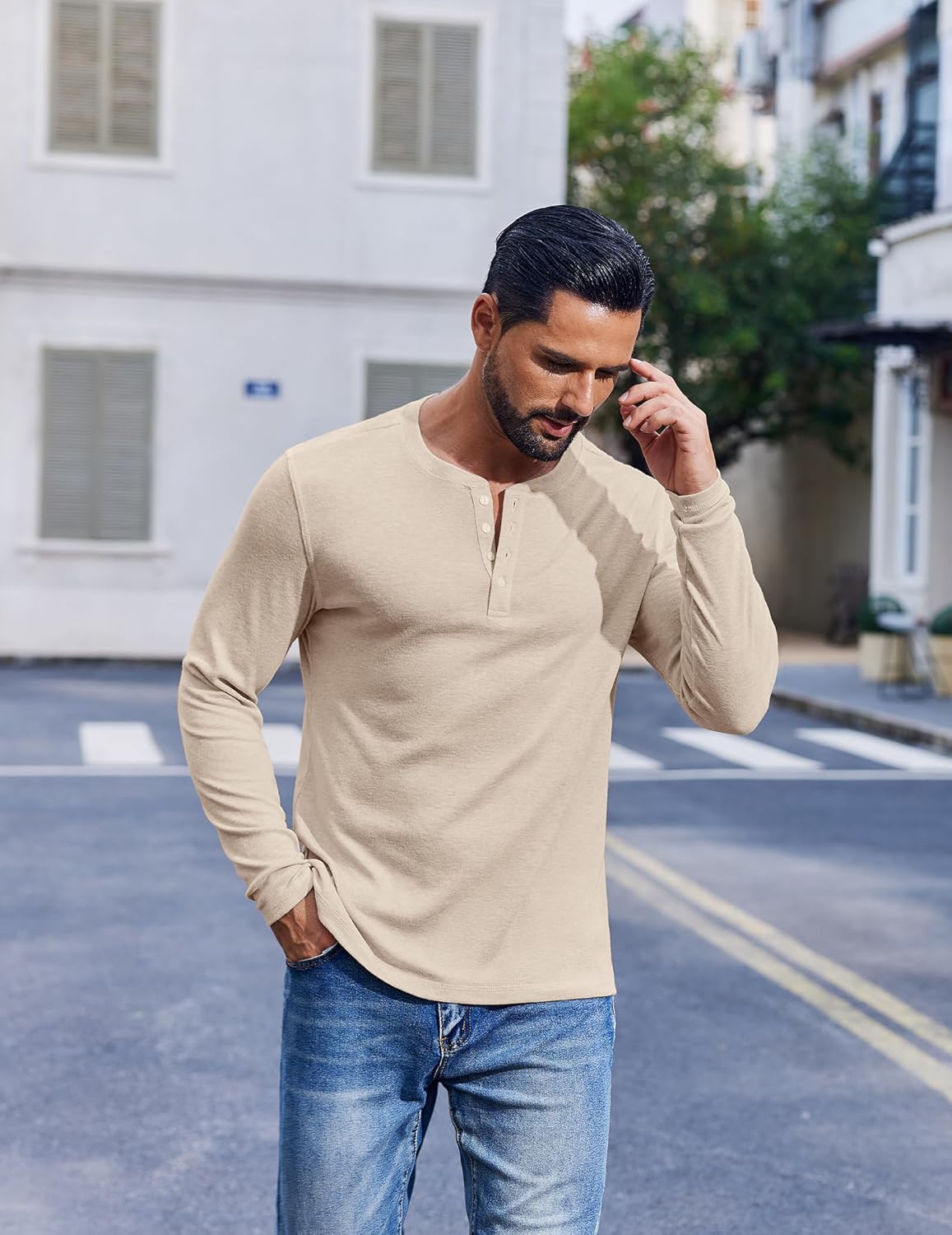 شراء كوفاندي قمصان هينلي للرجال باكمام طويلة وخفيفة الوزن بازرار قميص بلوفر كاجوال بيسيك اون لاين من امازون او نون وحراج كوفاندي قمصان هينلي للرجال باكمام طويلة وخفيفة الوزن بازرار قميص بلوفر كاجوال بيسيك