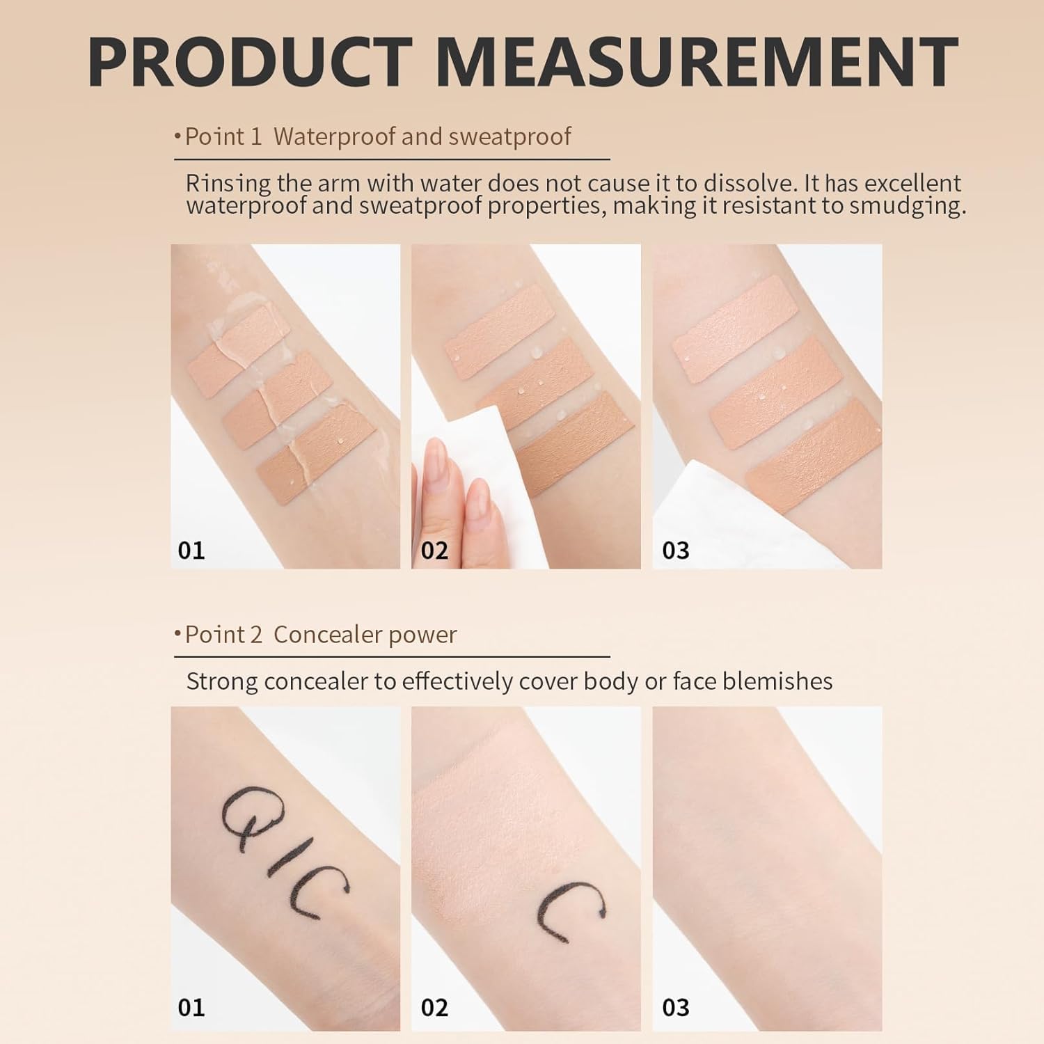 ✔ يدوم طويلاً ومقاوم للتلطخ – يبقى ثابتًا في الرطوبة والعرق والأنشطة اليومية دون تجاعيد.