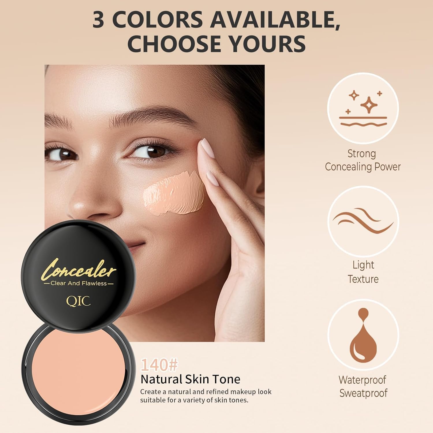 ✔ تغطية طبيعية لا تشوبها شائبة – تخفي العيوب والهالات السوداء والاحمرار دون عناء مع الحفاظ على لمسة نهائية تشبه البشرة.
