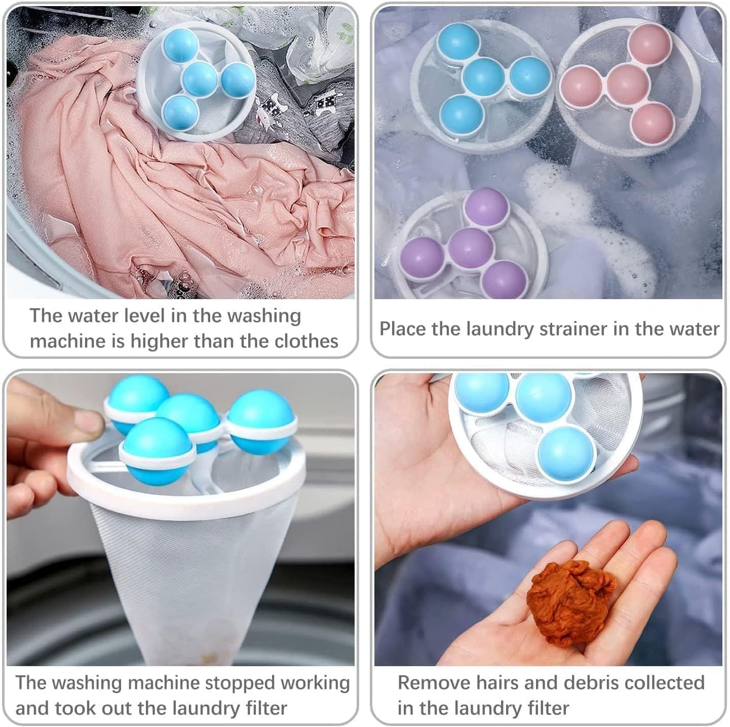 【توفير الوقت】يمكن أن يقلل مزيل شعر الحيوانات الأليفة هذا من مشاكل الانسداد، ويحمي الغسالة باهظة الثمن من الأعطال غير الضرورية. مع أداة التقاط شعر الحيوانات الأليفة هذه، لن تضطر إلى إزالة الشعر يدويًا قبل الغسيل، وهي مناسبة بشكل خاص لمحبي الحيوانات الأليفة.