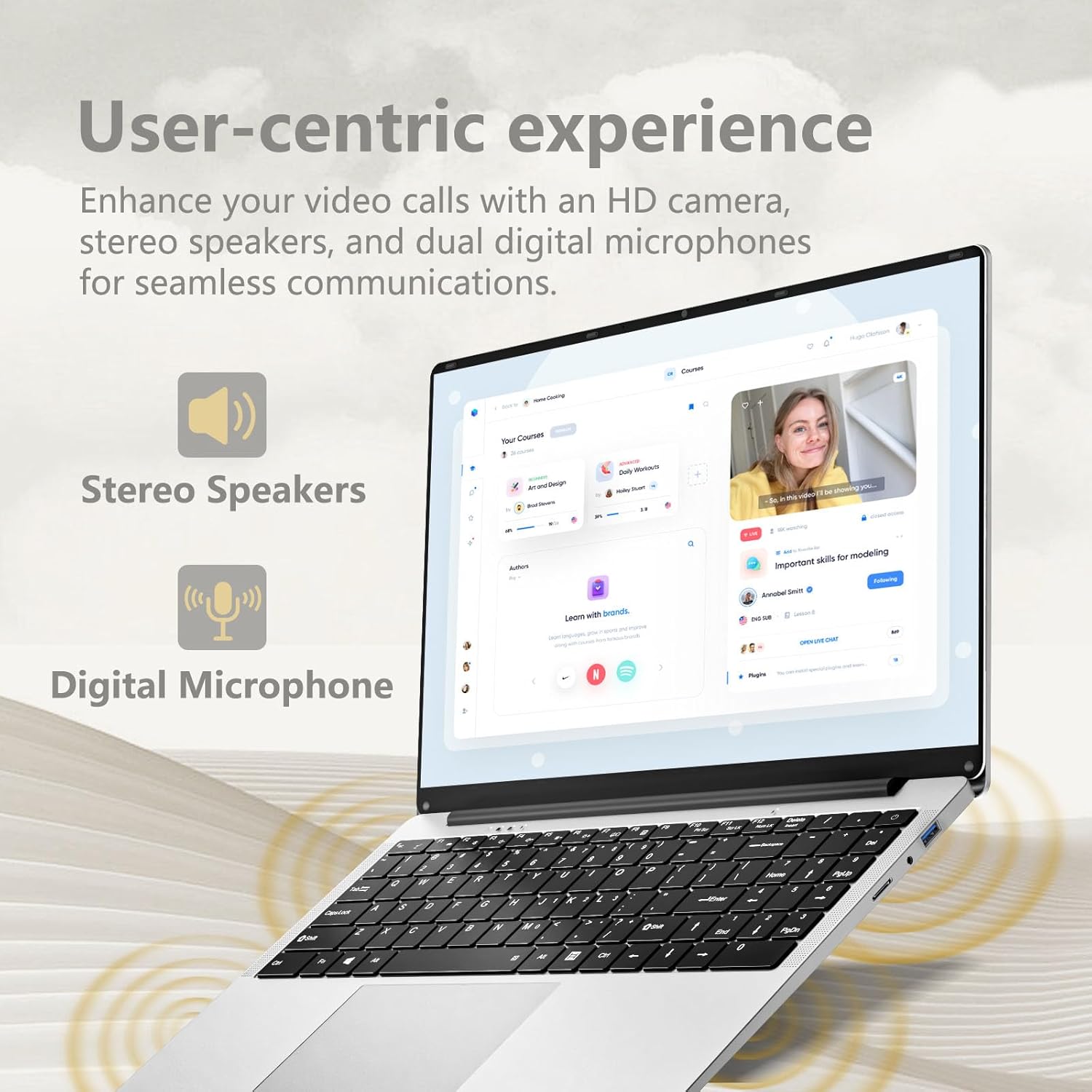 【شاشة لابتوب كبيرة للغاية】لابتوب ويندوز 11 برو مجهز بشاشة IPS FHD مقاس 15.6 انش 1920 × 1080، ونسبة الشاشة 16:9 توسع المساحة الرأسية للشاشة لعرض المزيد من المحتوى، مما يوفر تجربة بصرية مريحة وكفاءة أعلى عند تصفح صفحات الويب أو المستندات. يدعم هذا اللابتوب مقاس 15.6 انش أيضًا فتح وإغلاق الشاشة بزاوية 180 درجة، ويمكن تعديل زاوية الاستخدام حسب الرغبة وفقًا للاحتياجات.