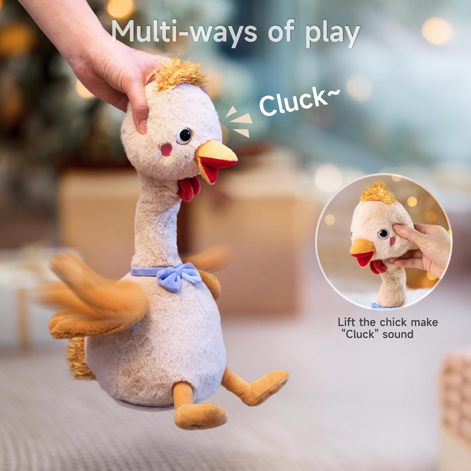 لعبة فروية رائعة على شكل دجاجة صفراء تتميز بوظائف تفاعلية للرقص والغناء والتحدث مع حركات رفرفة الأجنحة وتحريك الرقبة