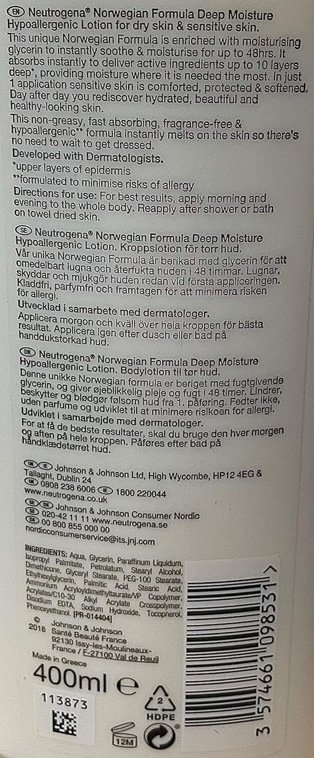 لوشن الجسم نيوتروجينا بتركيبة نرويجية للترطيب العميق لا يسبب الحساسية
