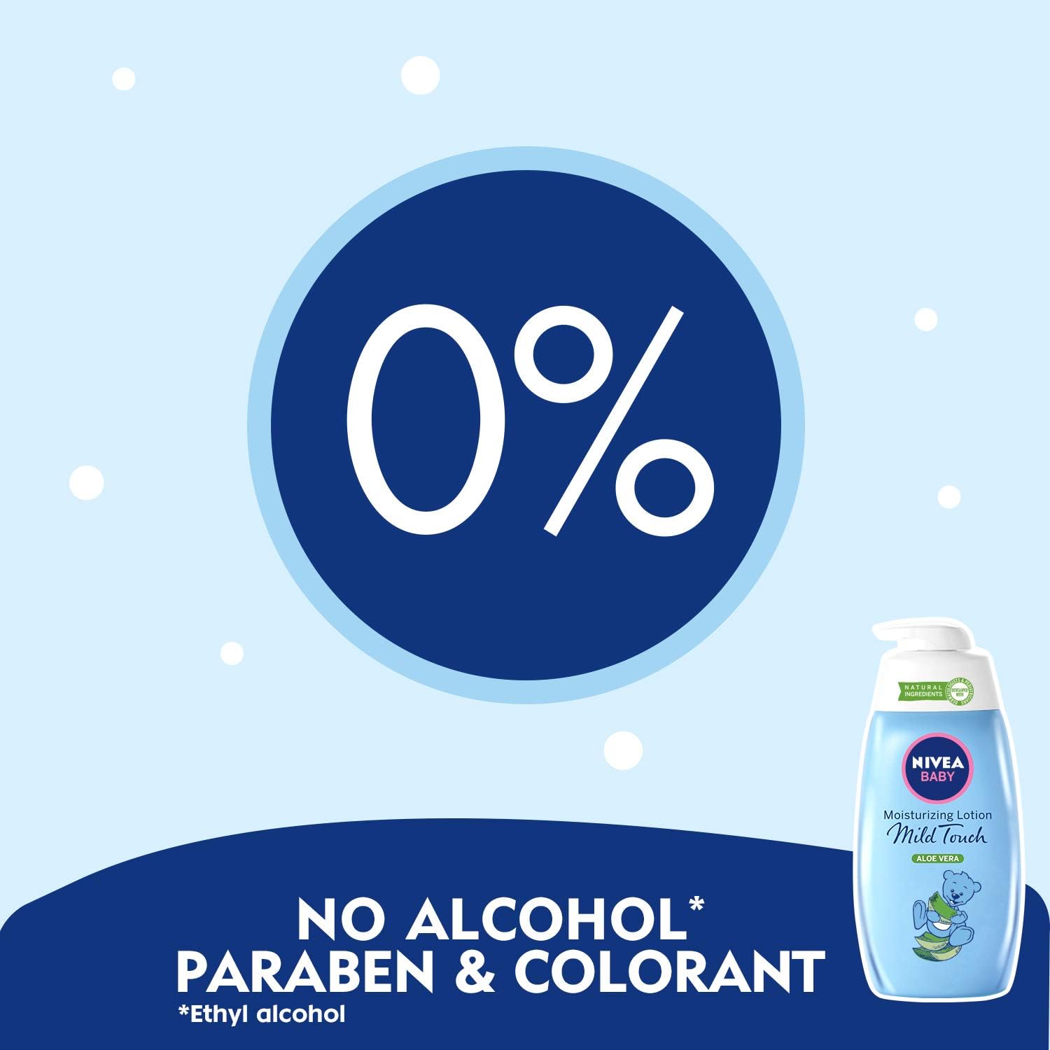 مكونات مختارة من أجل بشرة الطفل الحساسة. يحتوي على 0% من الكحول والبارابين والملونات.