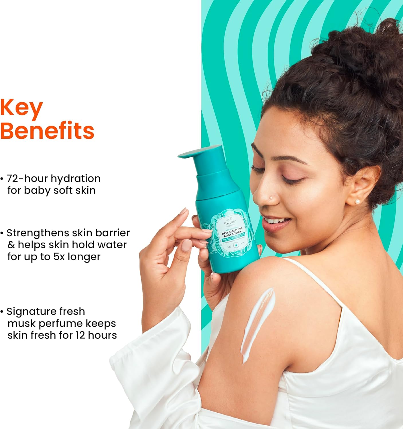 عطر يدوم طويلاً: يعمل لوشن الجسم المرطب هذا مثل العناية بالبشرة، ويرتدي مثل العطور. يترك عطرنا المميز رائحة المسك المنعشة التي تدوم طويلاً.