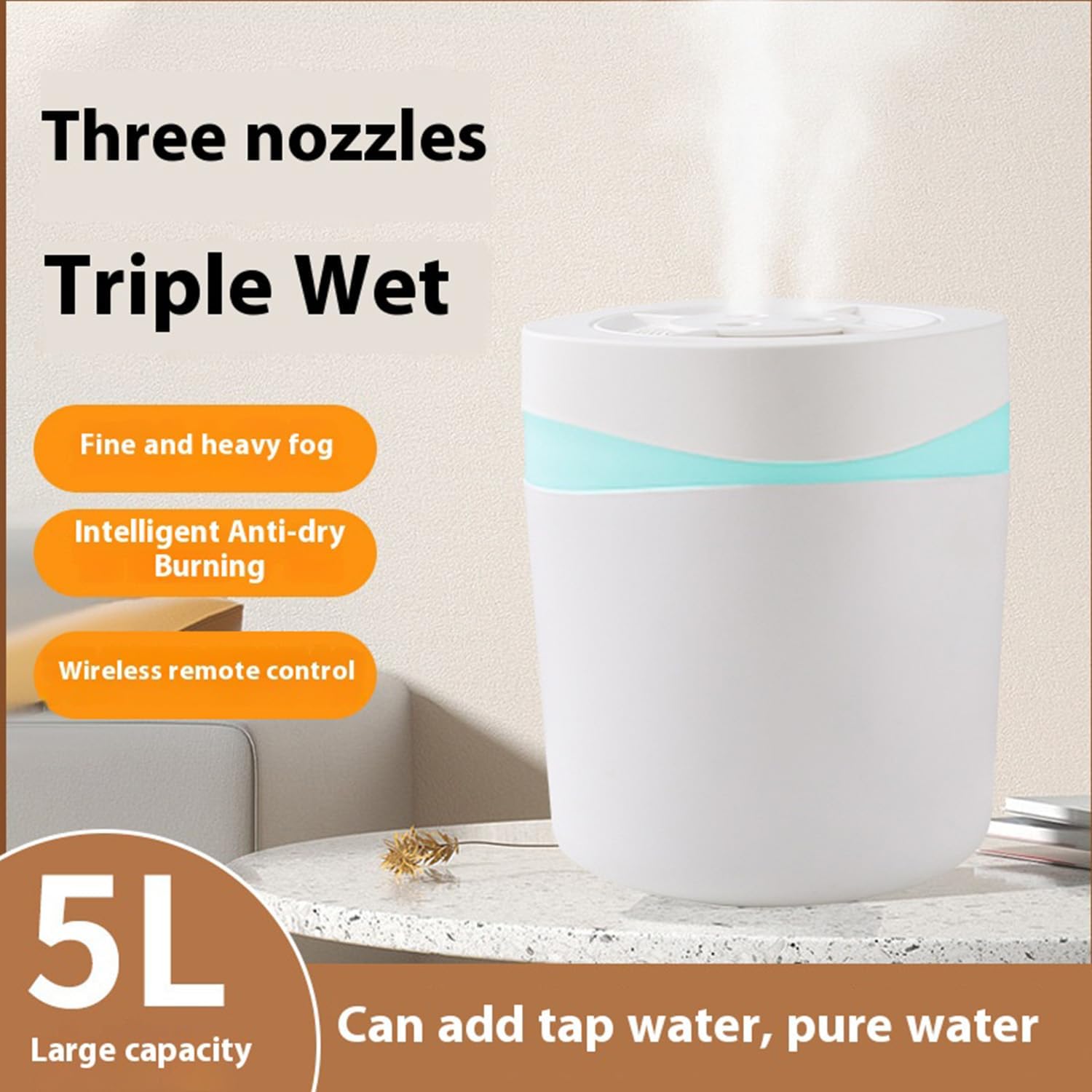 【مثالي للغرف الأكبر】: مرطب الهواء بسعة 5 لتر. من النهار إلى الليل، يمكن أن تعمل بشكل مستمر. مساحة قابلة للتطبيق تصل إلى قدم مربع/20-60 متر مربع، يمكن أيضًا ترطيب الغرف الكبيرة بسهولة!