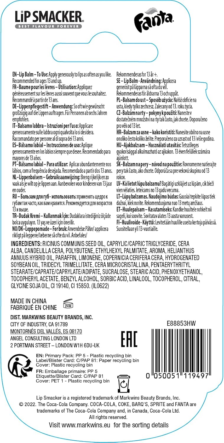 أروي عطشك مع مرطب الشفاه بنكهة أورانج فانتا قومي بلفها وعرفي حواسك على عالم الكوكا، مع الحفاظ على شفتيك ناعمة ولامعة. يوفر مرطب الشفاه الفريد هذا المذاق الأصلي لأورانج فانتا من كوكا كولا مع توفير ترطيب ممتد لشفتيك: ترطيب مهدئ وانتعاش الشفاه في منتج واحد. هذه هي الهدية المثالية لأي شخص على قائمتك… من ابنة أختك المهووسة إلى صديقتك المفضلة، تقدم ليب سماكر لك بلسم الشفاه الذي سيجعل شفتيك ناعمة ولامعة ورطبة! كوكاكولا وابتسامة مع مجموعة كوكا كولا: استمتع بمرطب الشفاه كوكاكولا من ليب سماكرز! تنساب النكهات اللذيذة على الشفاه بسلاسة وتوفر رطوبة تدوم طويلاً. بالإضافة إلى كونها ممتعة في الاستخدام، فإن ليب سماكرز لديها تركيبة ترطيب فعالة للغاية. تساعد المرطبات المتعددة والمطريات الخاصة على منع الشفاه الجافة والمتشققة والمتشققة والحماية منها. تتمحور ليب سماكر حول النكهات والأذواق اللذيذة، لجمعها والاستمتاع! نحن لا نختبر على الحيوانات. للاستخدام الخارجي فقط.