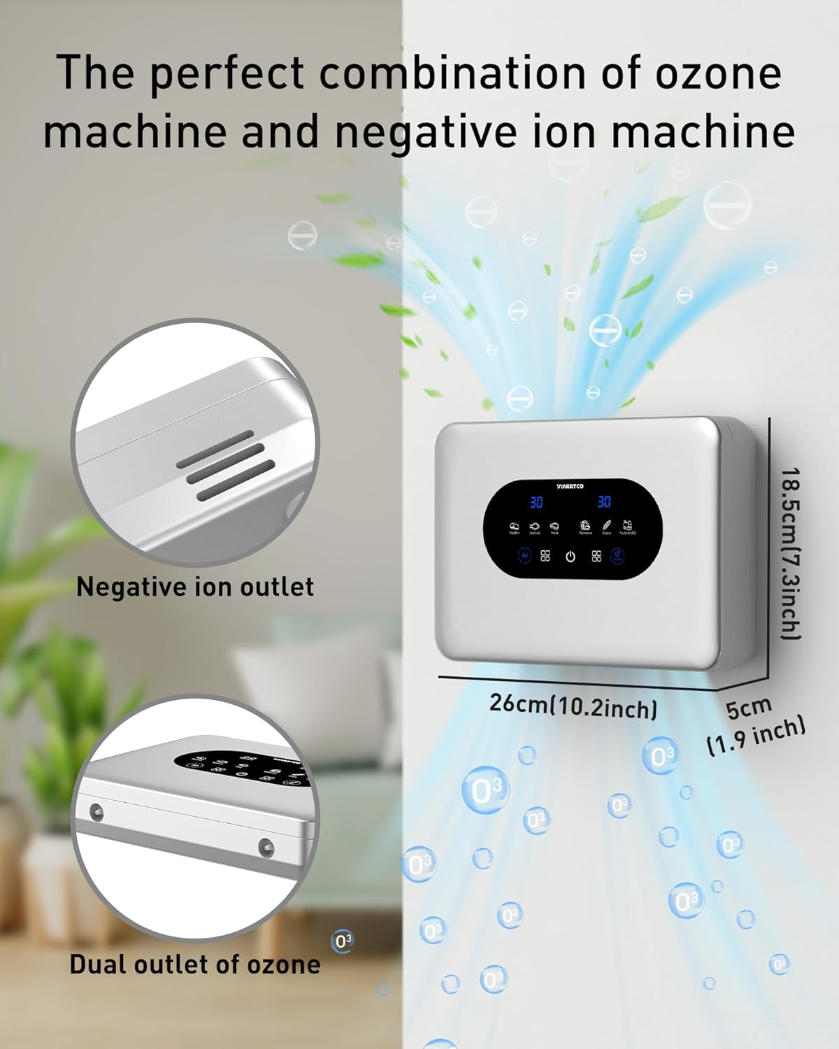 المزيج المثالي من آلة الأوزون ومؤين الهواء: باستخدام التصميم الأكثر تقدمًا، تم تصميم مخرج الأيونات السالبة ومنفذي الأوزون على التوالي.