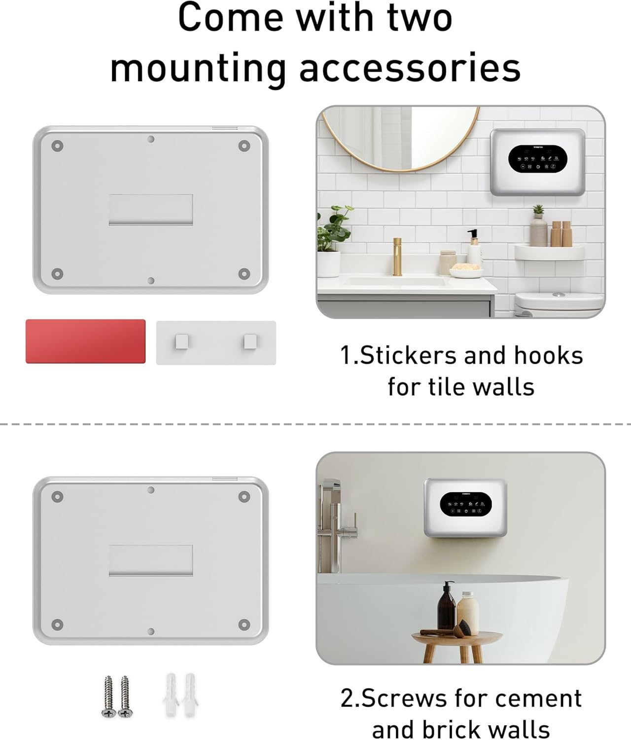 مثبتة على الحائط: توجد وسادات غير قابلة للانزلاق على الظهر، وتأتي العبوة مع ملحقات تثبيت على الحائط. تتميز بتصميم عصري وبسيط وصغير الحجم ولن تشغل مساحة متاحة بعد تعليقها على الحائط.