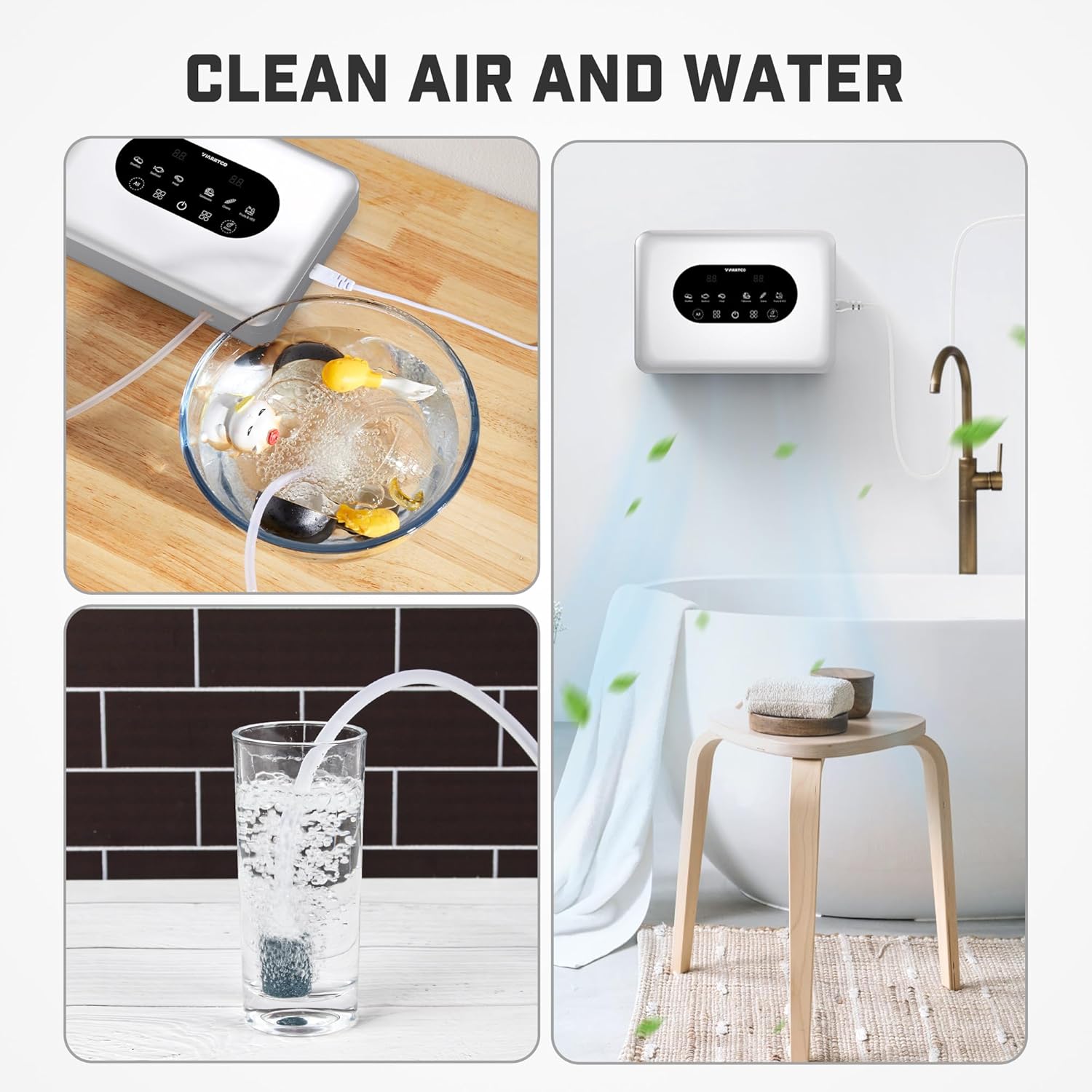 جهاز اوزون محمول للمياه والهواء، مع منافذ مزدوجة، ايونات سالبة ومؤقت، فضي