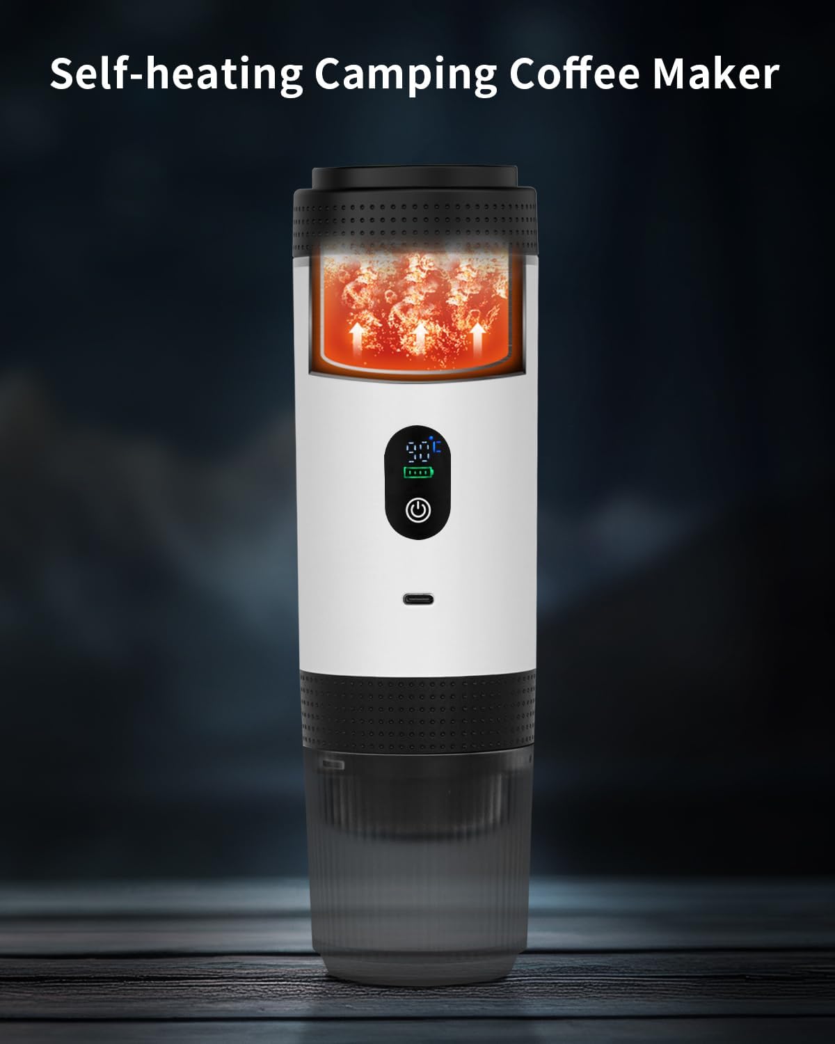 ماكينة تحضير القهوة القابلة لإعادة الشحن تعمل بالبطارية: تعمل ببطارية 7500 mAh، تأتي ماكينة تحضير الإسبريسو المحمولة للسفر هذه مع شواحن سيارة من النوع C 5 فولت/2 امبير، مما يوفر خيارات شحن عالمية. استمتع بما يصل إلى 5 لقطات ساخنة مع ماء بدرجة حرارة الغرفة أو أكثر من 100 طلقة بماء ساخن مسبقًا، مما يجعله مثاليًا لوجبات متعددة أثناء التنقل.