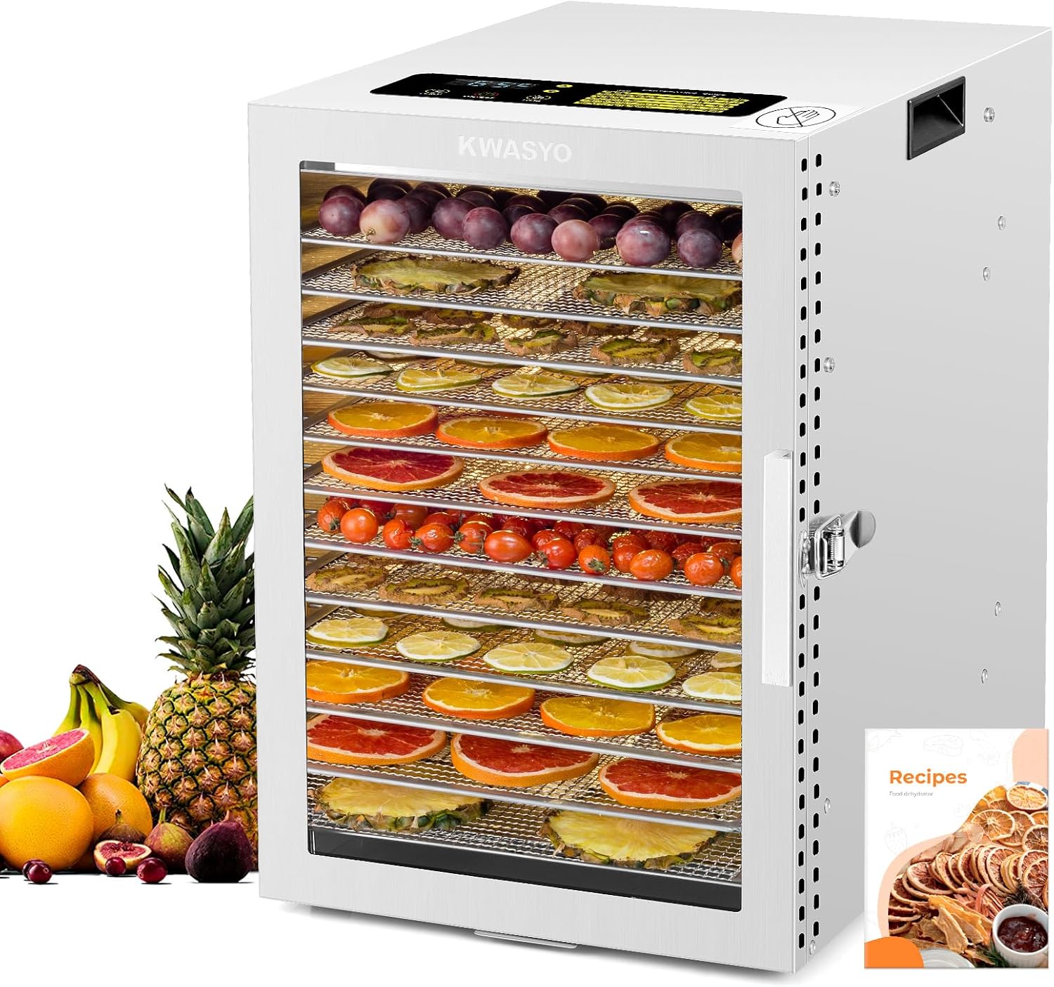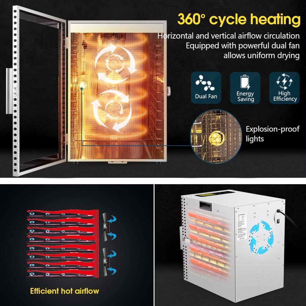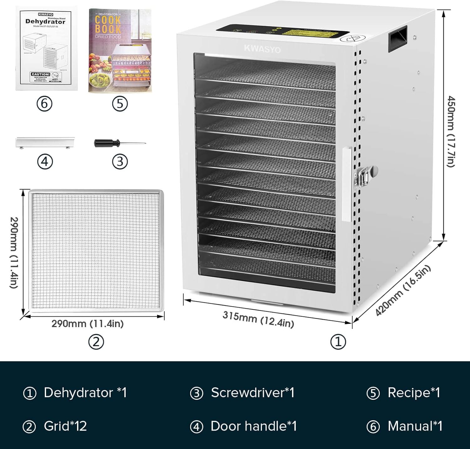 ღ【12 صينية ذات سعة كبيرة】- مع 12 صينية تجفيف متينة من الستانلس ستيل (29 × 29 سم)، كل طبقة منفصلة 3 ملم، منطقة التجفيف 1.01 متر مربع، مثالية لتجفيف مختلف الخضروات والفواكه واللحوم والأعشاب والزهور وغيرها من الأطعمة. مجفف من الستانلس ستيل لتلبية احتياجات المنازل والشركات.