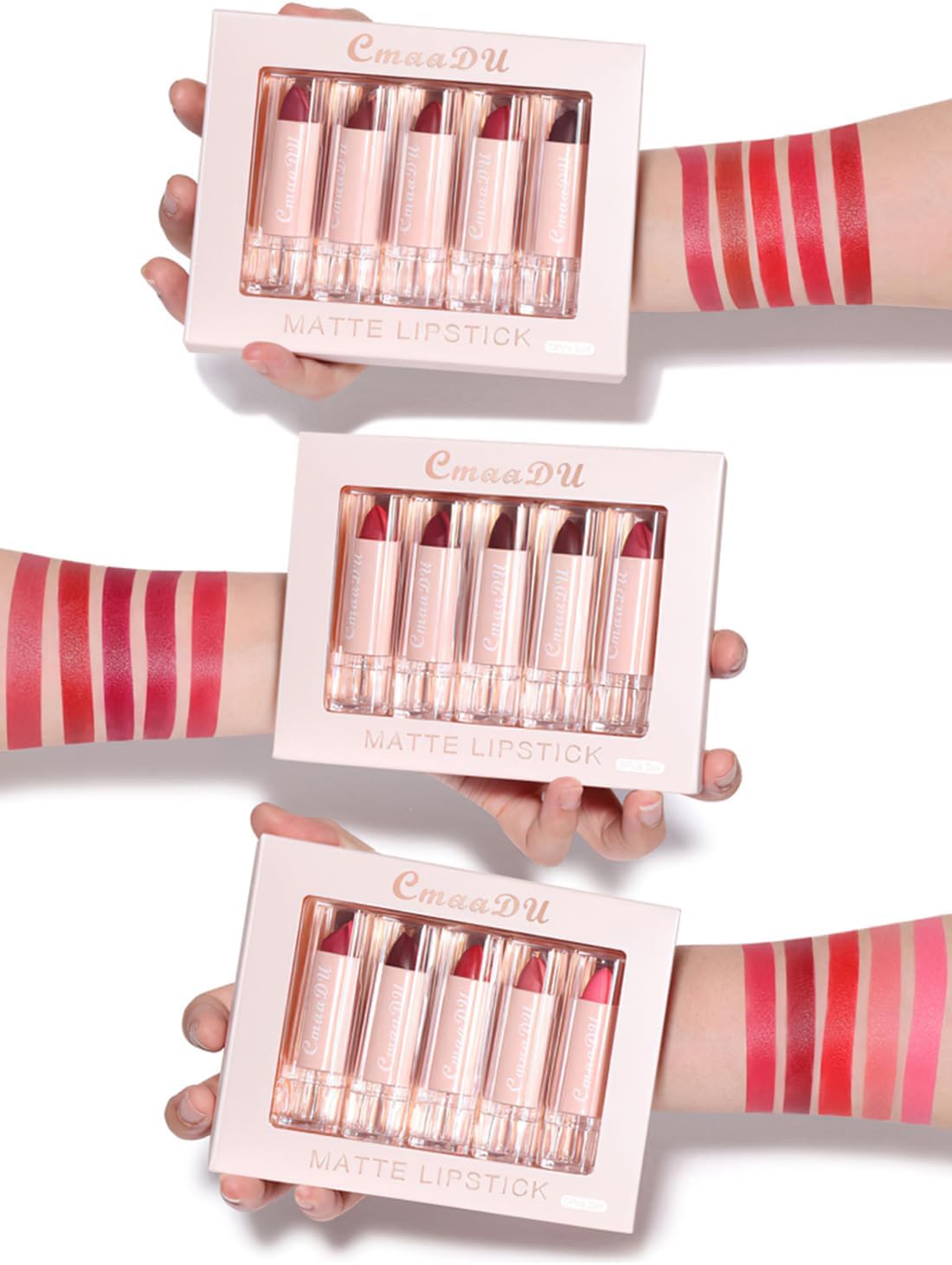 【مجموعة أحمر شفاه سائل من 5 ألوان】تحتوي على 5 من الألوان الأكثر شعبية لملمع الشفاه بالحجم الكامل، يدوم طويلاً ومقاوم للماء، مع تأثير غير لامع بعد الاستخدام، مرطب وغير لزج ولا يجف، مما يجعل الشفاه تبدو أكثر امتلاءً ونعومة وراحة.