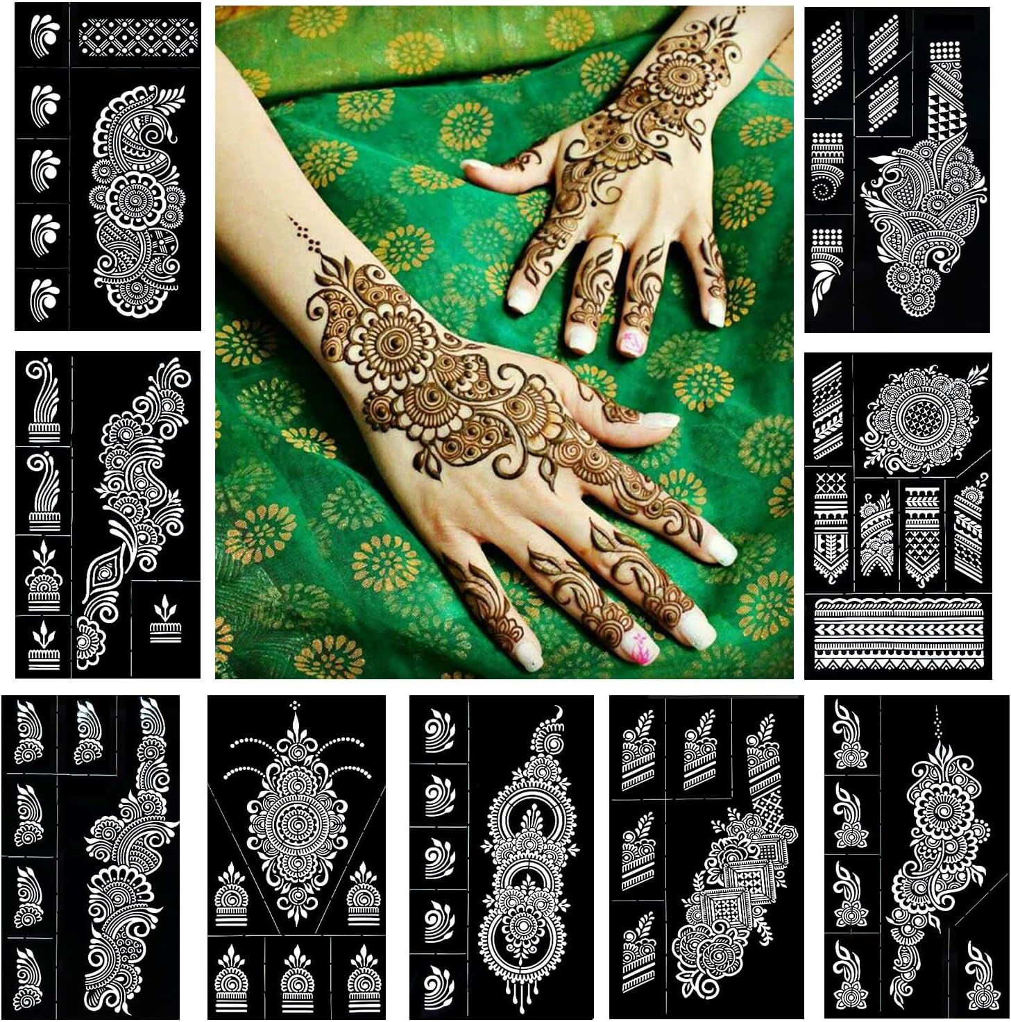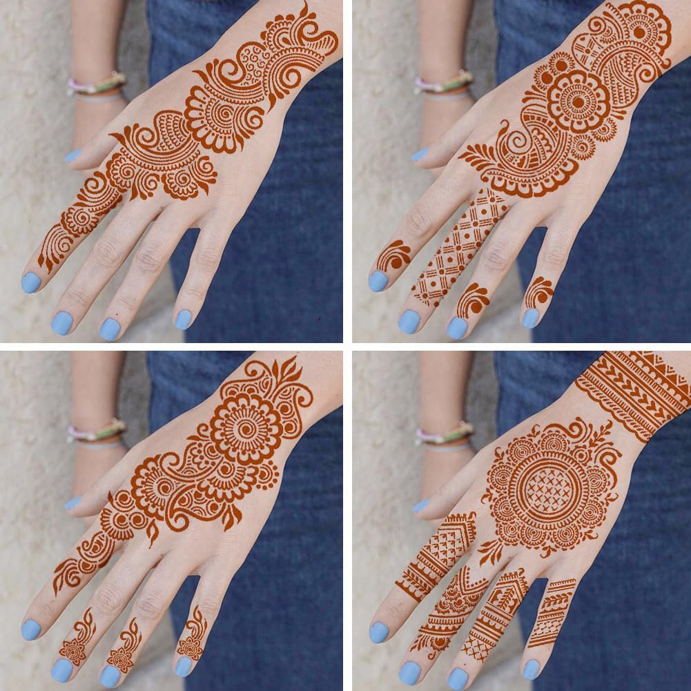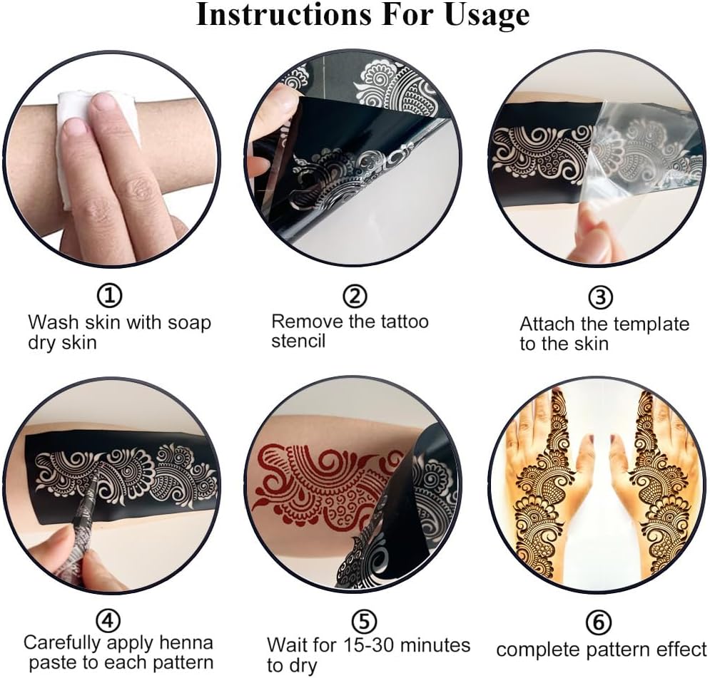 تجربة ممتعة: يمكن أن يساعدك قالب يد الحناء الخاص بنا على صنع تصميمات وشم مؤقت مثالية في غضون دقائق. مثالية لهدايا الحفلات وجميع المناسبات مثل حفلات الزفاف وحفلات أعياد الميلاد والحفلات الموسيقية وحمام السباحة والشاطئ والحفلات والمهرجانات والحفلات الموسيقية وحفلات يوم الحناء وما إلى ذلك.