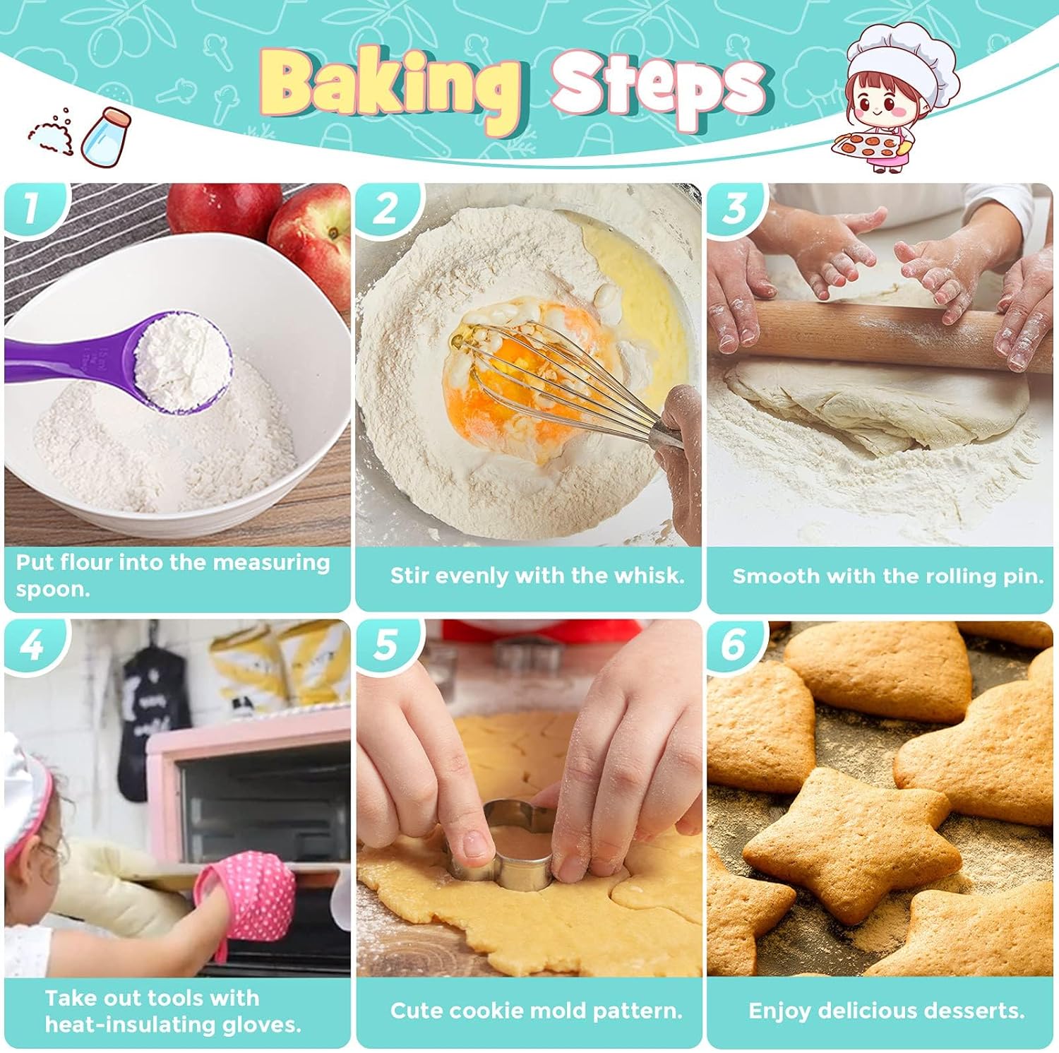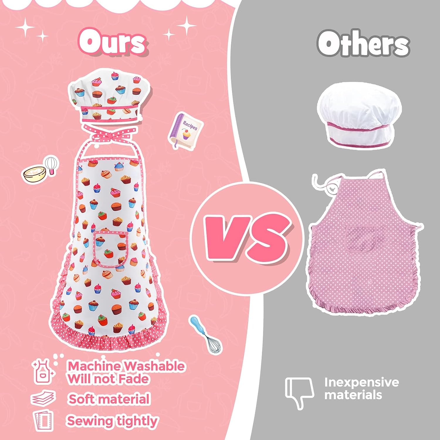 【ألعاب تعليمية ممتعة】يشجع فستان الأطفال على الإبداع والمهارات العملية. يمكن للأطفال لعب دور الطهاة. بتوجيه من والديهم، يمكنهم الرجوع إلى الوصفات وتجربة عملية الطهي الحقيقية ومشاركة متعة الخبز.