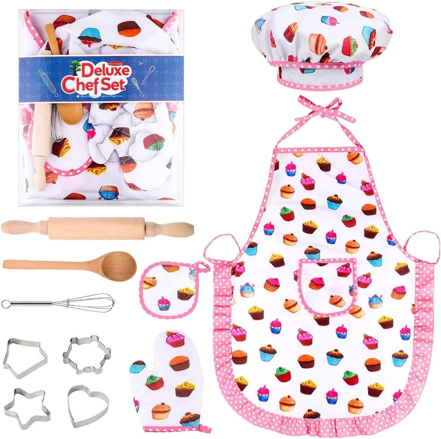 🎁【هدية إبداعية للأطفال】نقوم بتعبئتها في صندوق من بلاستيك PVC، شفاف في لمحة، 11 قطعة من مجموعات ملابس المطبخ للأطفال الصغار، لطيفة وعملية، مناسبة كهدية مثالية للمهرجانات وأعياد الميلاد للأولاد والبنات الذين يحبون الطهي.