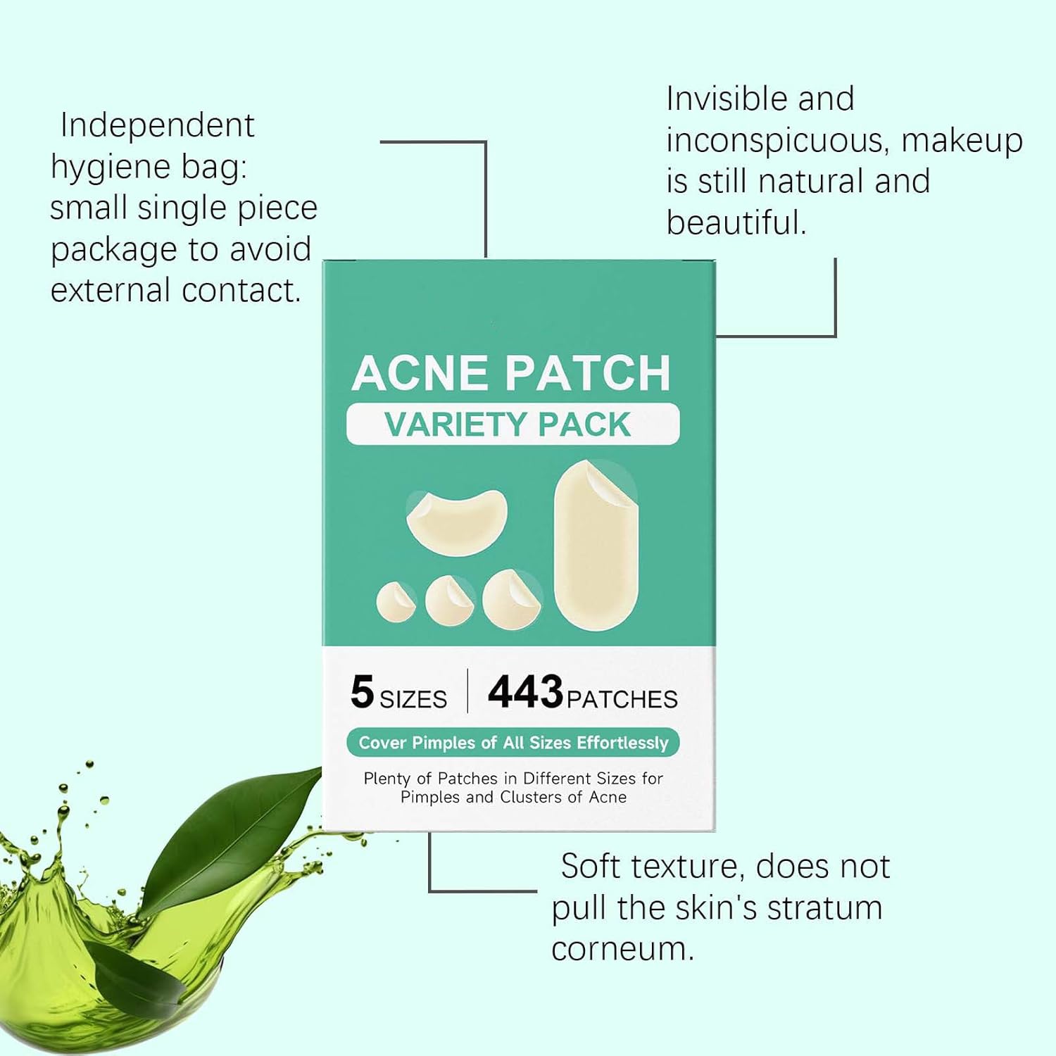 (مزج غير مرئي): تم تصميم رقع حب الشباب هذه بذكاء لتندمج بسلاسة مع لون بشرتك. بمجرد وضعها، تصبح غير مرئية تقريبًا، مما يسمح لك بممارسة أنشطتك اليومية بثقة. سواء كنت متجهًا إلى العمل أو المدرسة أو حدث اجتماعي، فإن هذه الرقع لن تجذب الانتباه غير المرغوب فيه