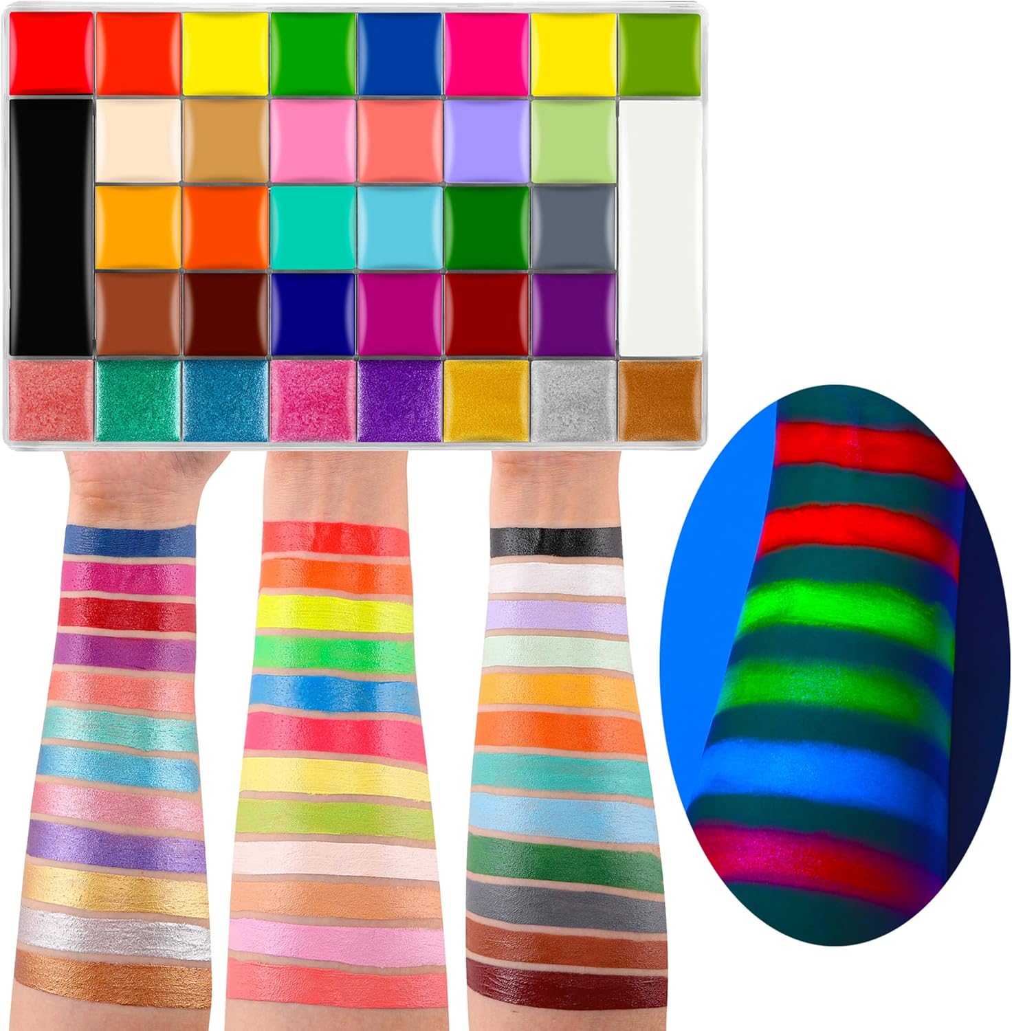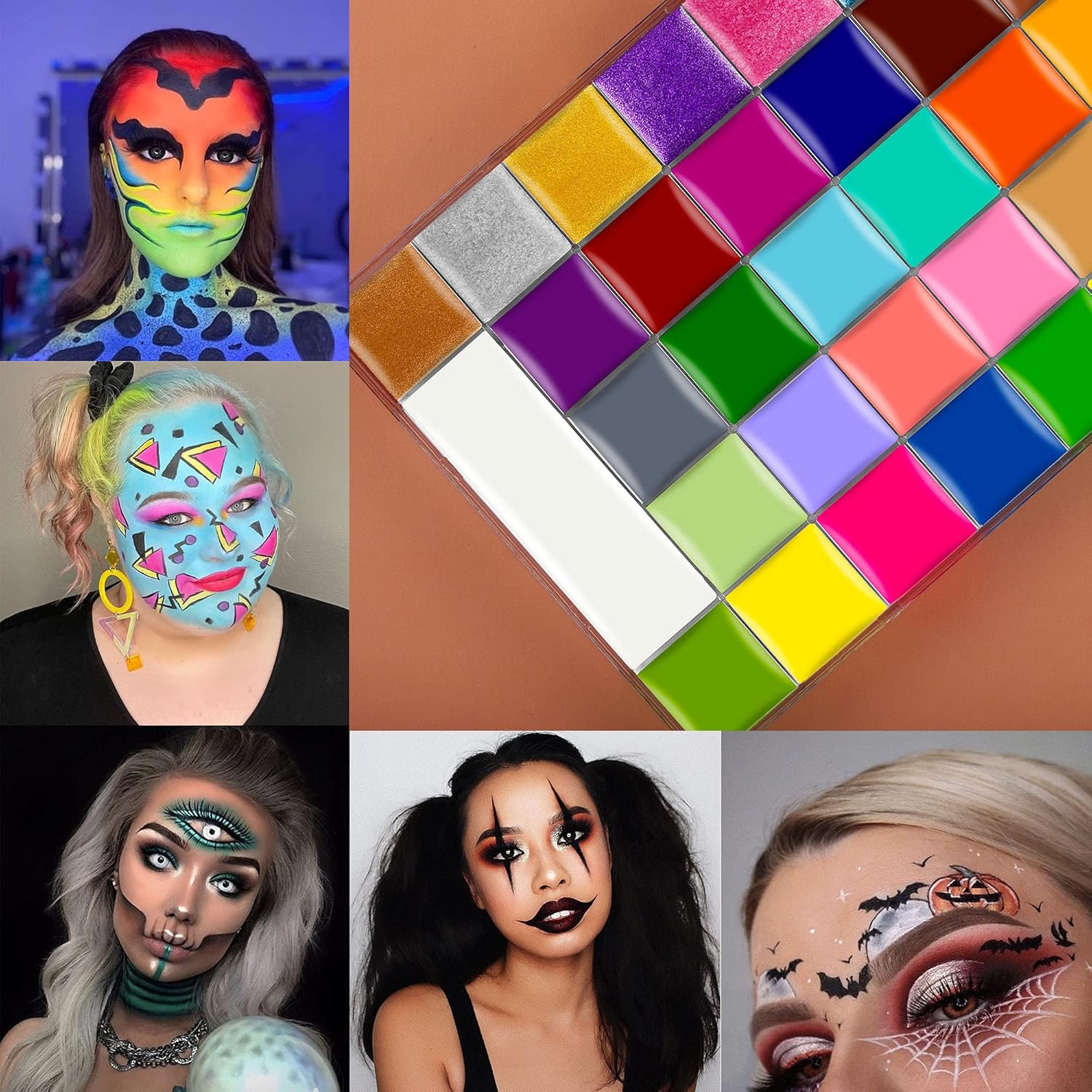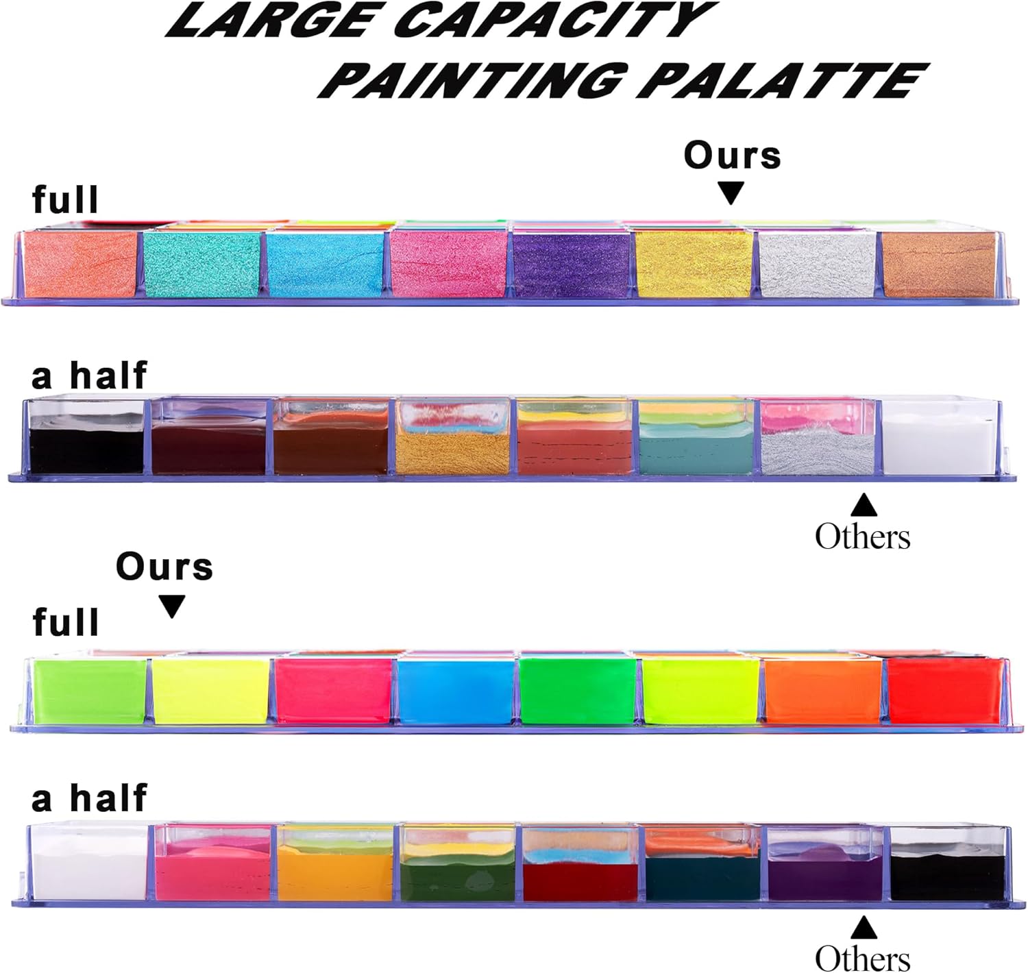 【أساس الزيت】 لوحة طلاء الوجه: نسيج كريمي يغطي البشرة دون عيوب؛ لون مركز؛ سهل النشر؛ يمكنك نشرها رقيقة كما تريد أو تعبئتها بشكل سميك كما تريد. صديقة لكل من المحترفين أو المبتدئين. (لأن هذا المنتج يعتمد على زيتي، فإنه يحتاج المزيد من الوقت لتجف، نقترح استخدام مسحوق ضبط بعض اللوحة)