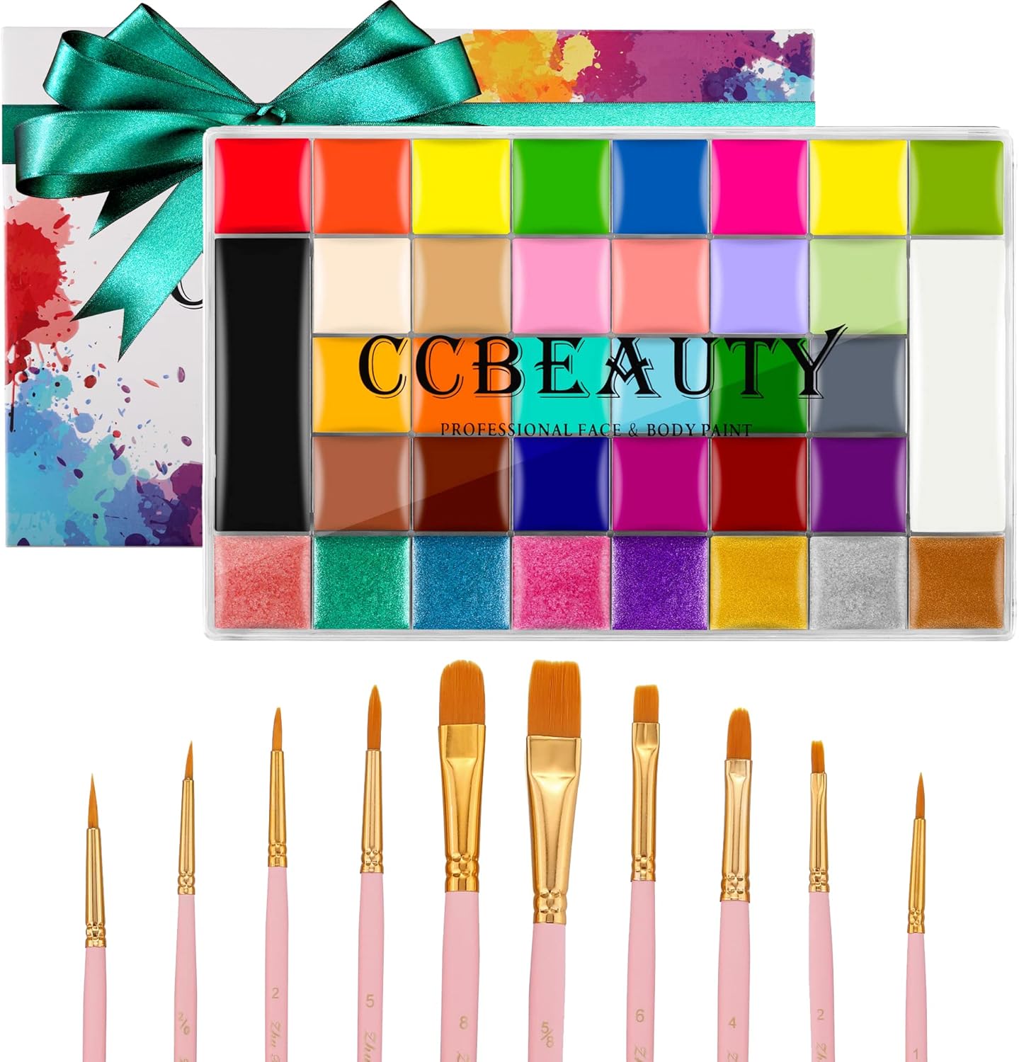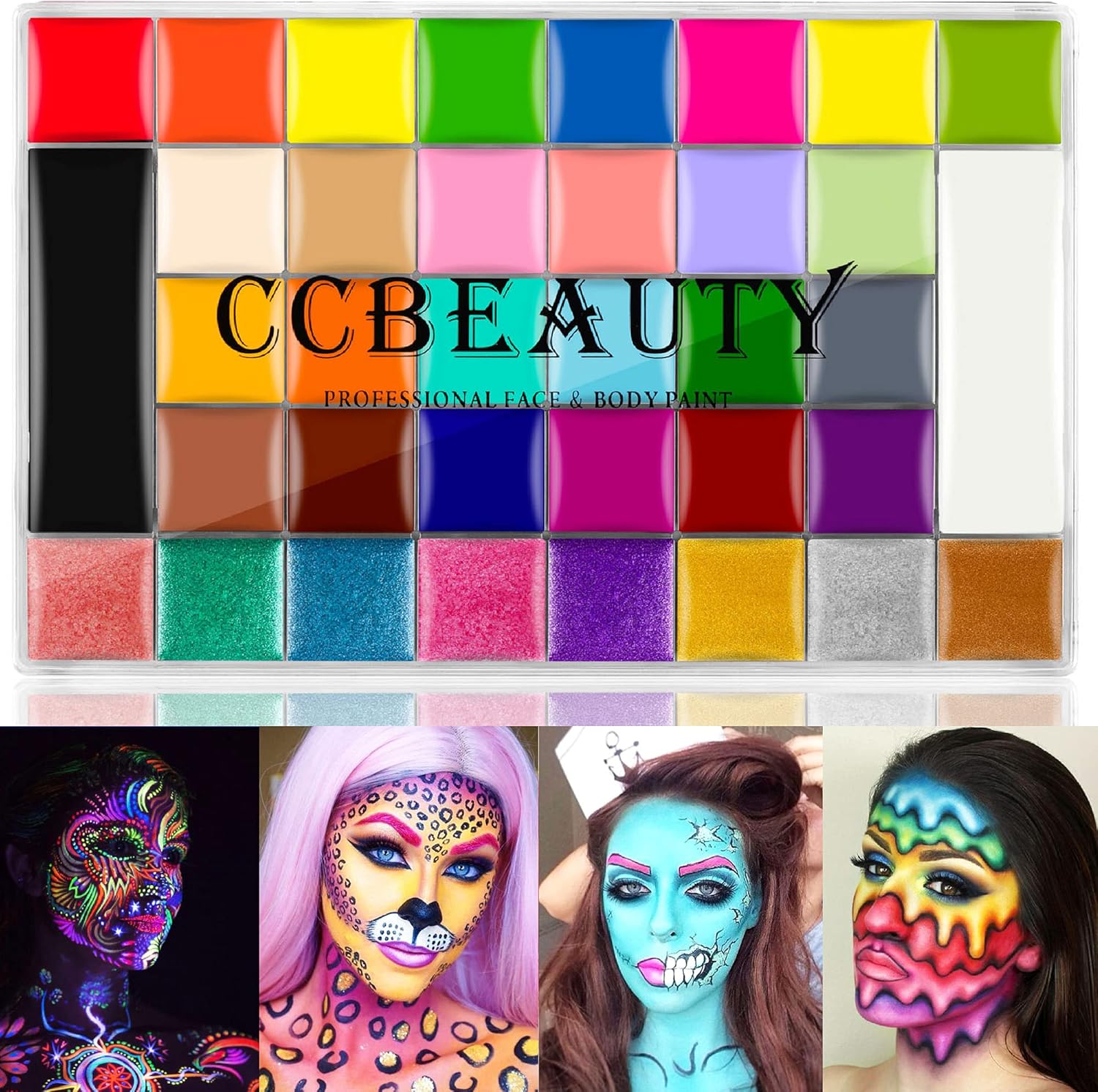 مجموعة طلاء للوجه من CCbeauty مكون من 36 لونًا احترافيًا ، مجموعة طلاء مكياج كوسبلاي ، مؤثرات خاصة للهالوين ، مجموعة مكياج SFX مع 10 فرش وردية