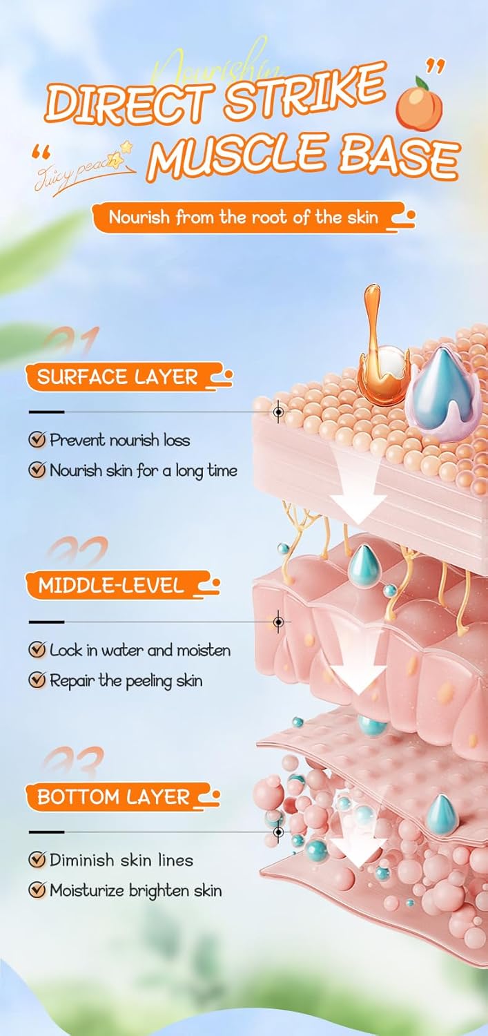 مكونات طبيعية للاستخدام اليومي: مصنوعة من مستخلص الخوخ النباتي وفيتامين E، هذه المجموعة تمنع العطور الاصطناعية والبارابين. تركيبة خفيفة لا تسبب الحساسية آمنة لجميع أنواع البشرة، بما في ذلك البشرة الحساسة، مما يوفر راحة البال لروتين العناية بالبشرة اليومي