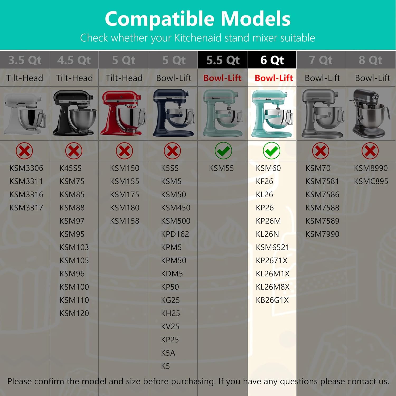 ملاءمة مثالية – مجموعة استبدال الخلاط الحامل مصممة لخلاطات كيتشن ايد 5.5 و6 كوارت. متوافق مع كيتشن ايد KSM60، KP26M، KL26N، KSM6521، KSM6521، KP2671X، KL26M1X، KL26M8X، KB26G1X