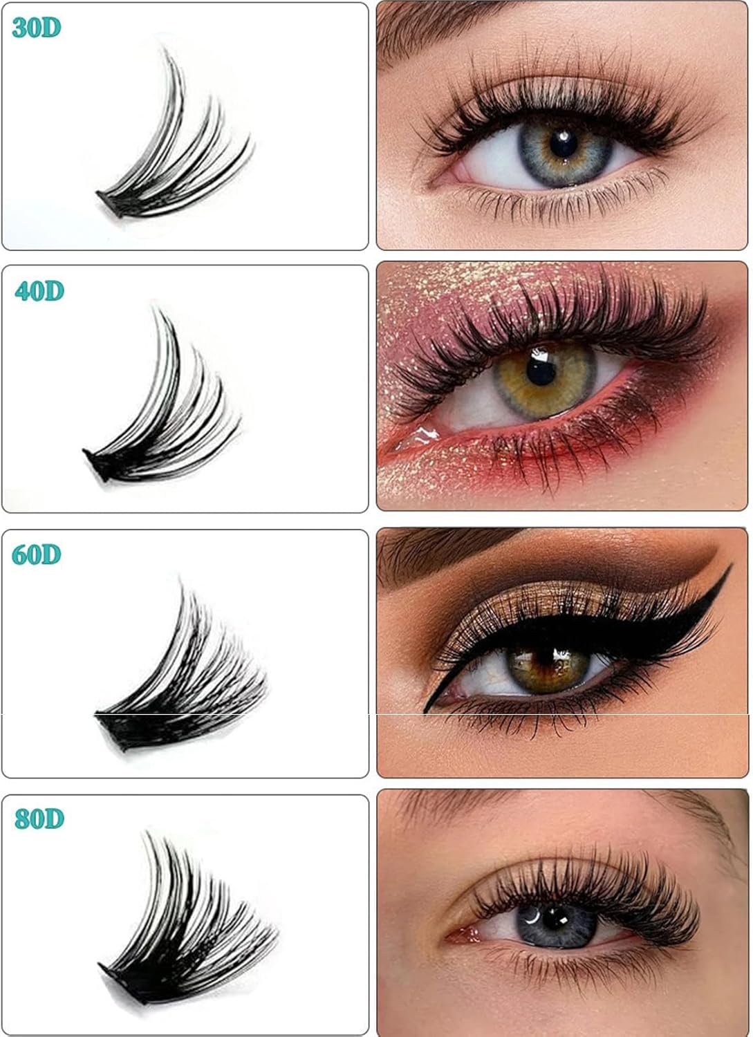 مناسبة للمبتدئين: مجموعة الرموش العنقودية الناعمة 8-16 ملم سهلة الاستخدام؛ حتى لو كنت مبتدئًا في الرموش؛ يمكن ارتداء الرموش العنقودية وفقًا للطول المطابق. استمتعي بوصلات الرموش في المنزل، اصنعي جمالك بنفسك