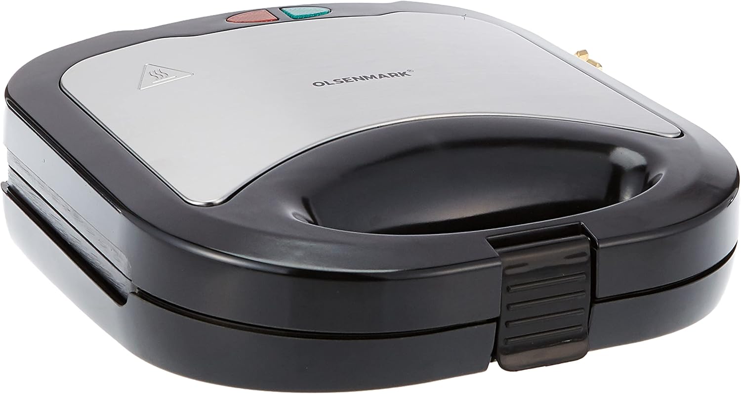 محضرة شطائر من أولسنمارك موديل OMGM2321، بتصميم عصري، مصنوعة من الفولاذ المقاوم للصدأ، باللون الأسود، بقدرة 750 واط، مع طلاء غير لاصق