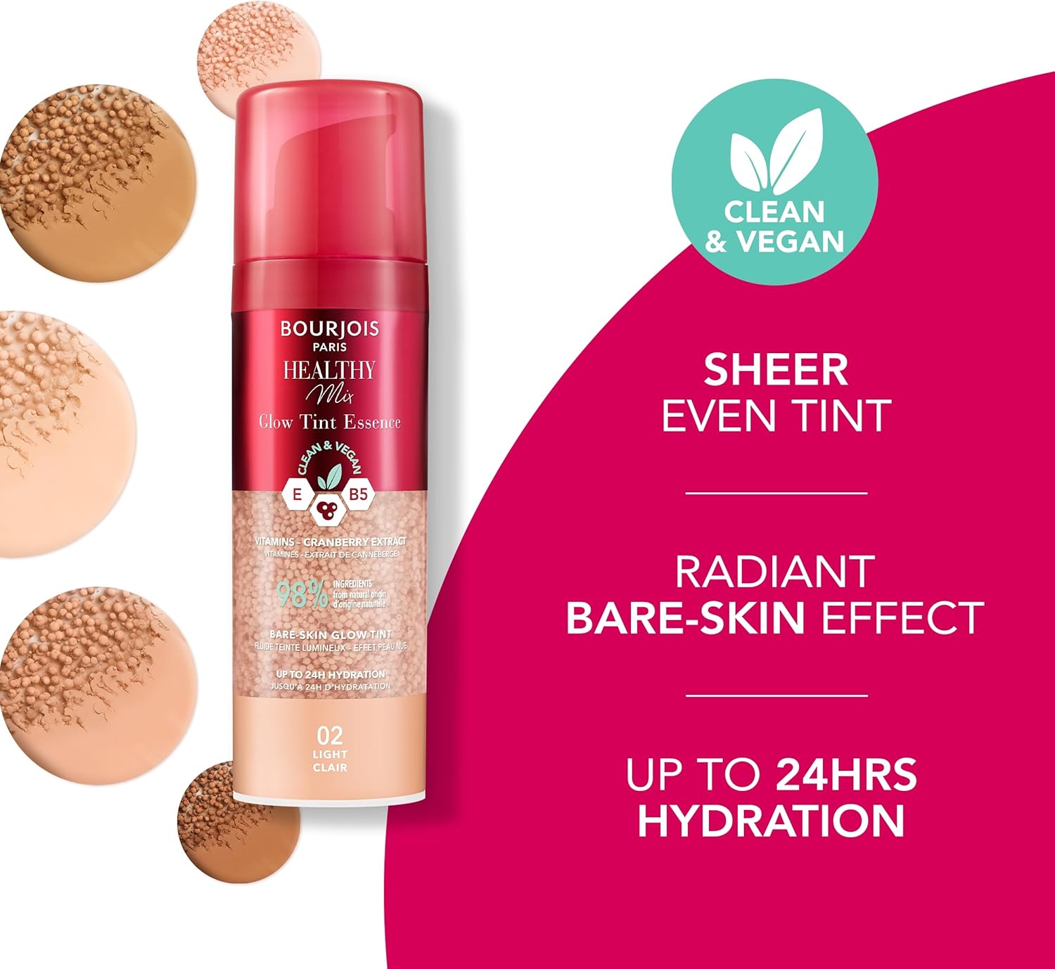 احصلي على إشراقة البشرة الطبيعية مع بورجوا هيلثي ميكس جلو تينت ايسنس، وتمتعي بتأثير فلتر شفاف ومشرق.