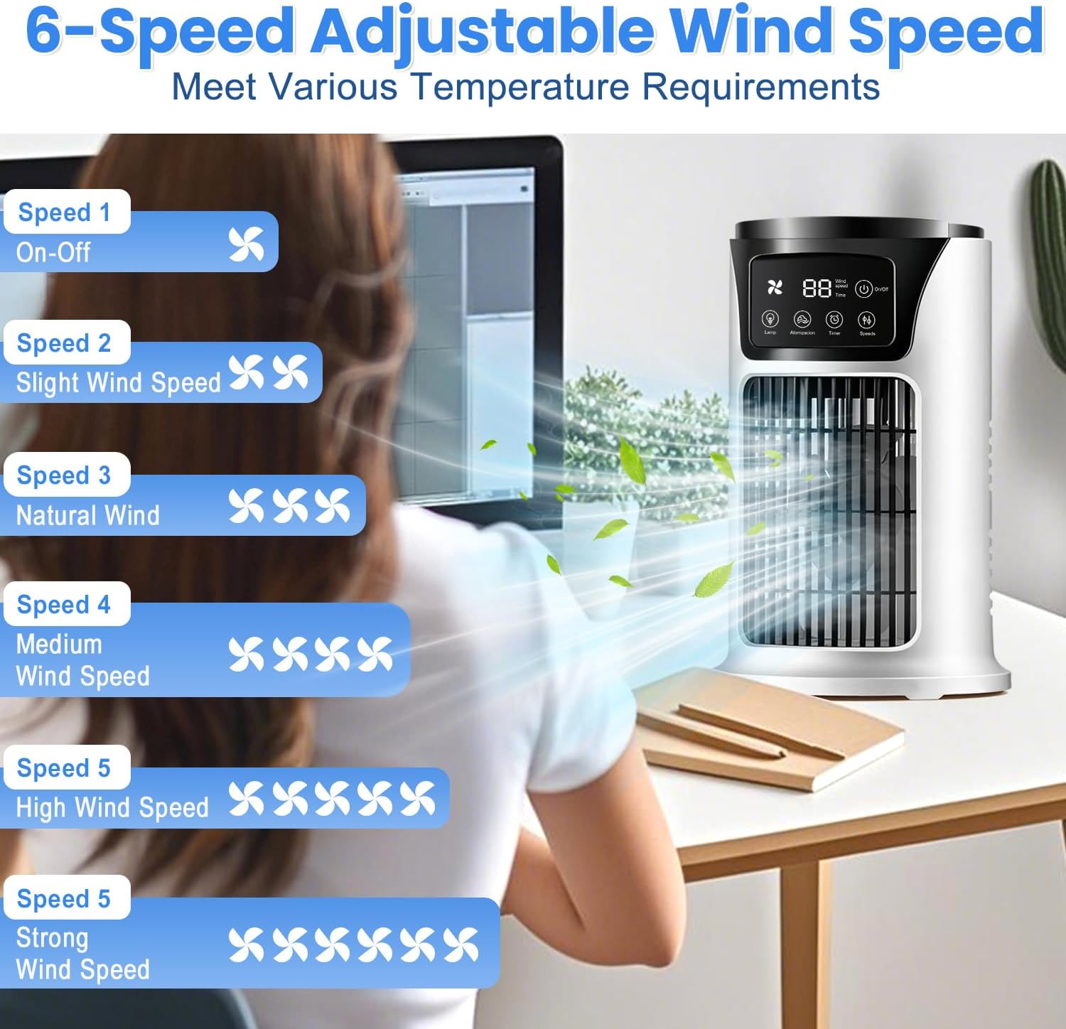 【تبريد سريع في 3 ثوانٍ وتعديل 6 سرعات】 تبريد سريع في 3 ثوانٍ: تتيح لك تقنية التبريد الفريدة الشعور بالانتعاش في 3 ثوانٍ. تعديل بـ 6 سرعات: يمكنك اختيار سرعة الرياح المناسبة وفقًا لتفضيلاتك لتلبية الاحتياجات المختلفة.