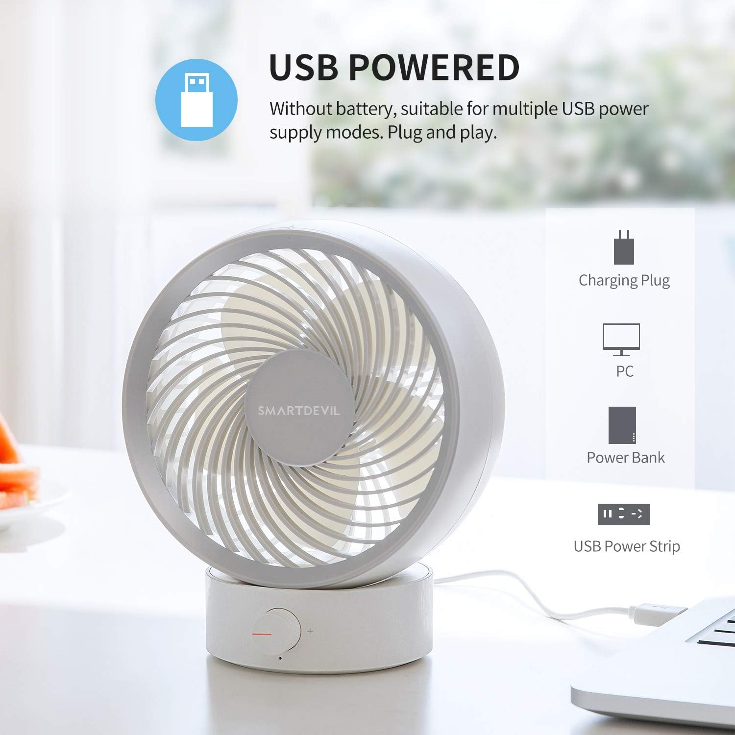 سمارت ديفل مروحة مكتب USB جديدة، مروحة طاولة شخصية صغيرة مع رياح قوية، مروحة صغيرة محمولة تعمل بهدوء للمنزل والمكتب وغرفة النوم وسطح المكتب (ابيض)