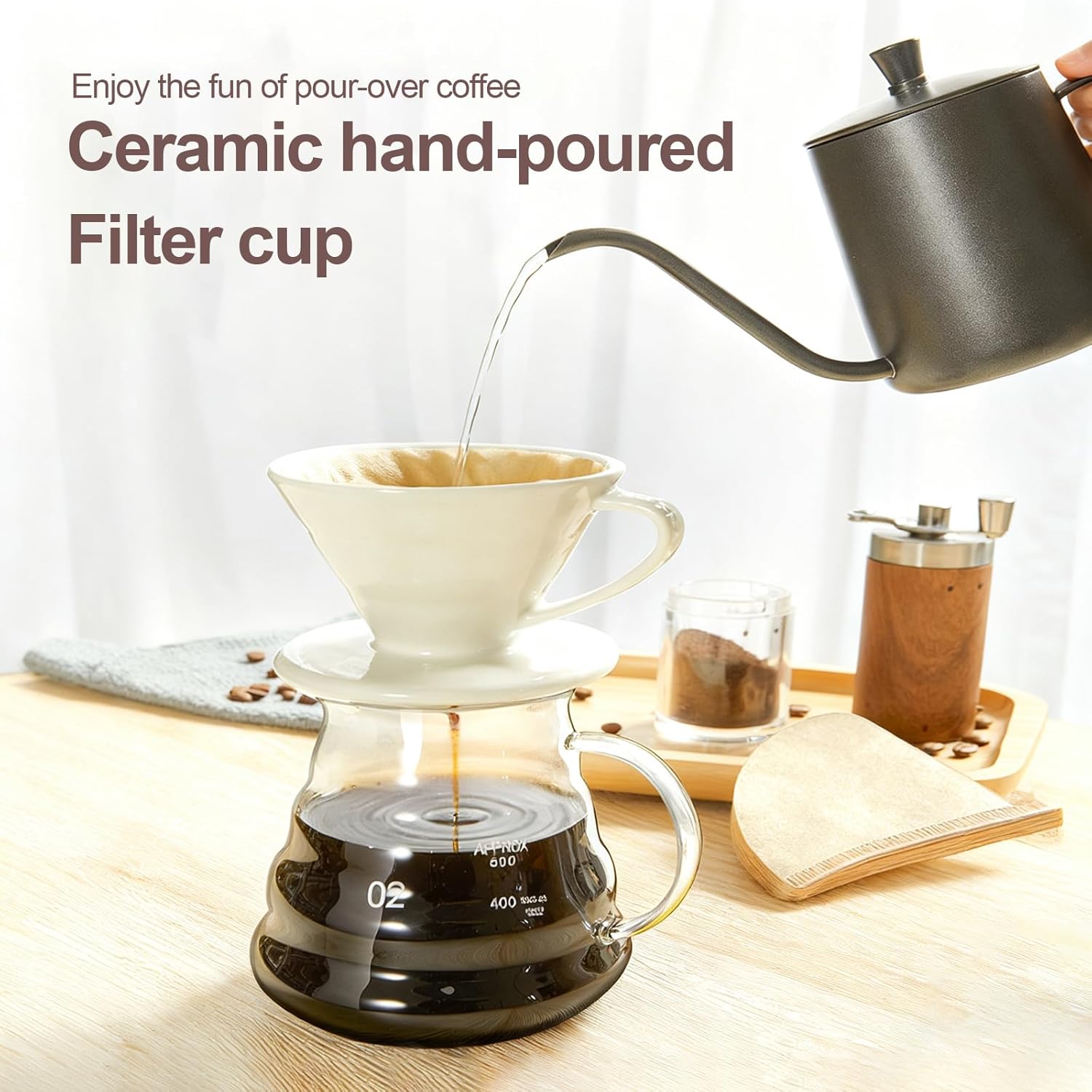 【سيراميك متين ويحافظ على الحرارة】مصنوع من سيراميك مُحرق بدرجة حرارة عالية، يحافظ هذا الفلتر على حرارة ثابتة طوال عملية التحضير. تعزز القاعدة السميكة الثبات الحراري، ما يضمن كفاءة استخلاص عالية ونكهة أغنى.