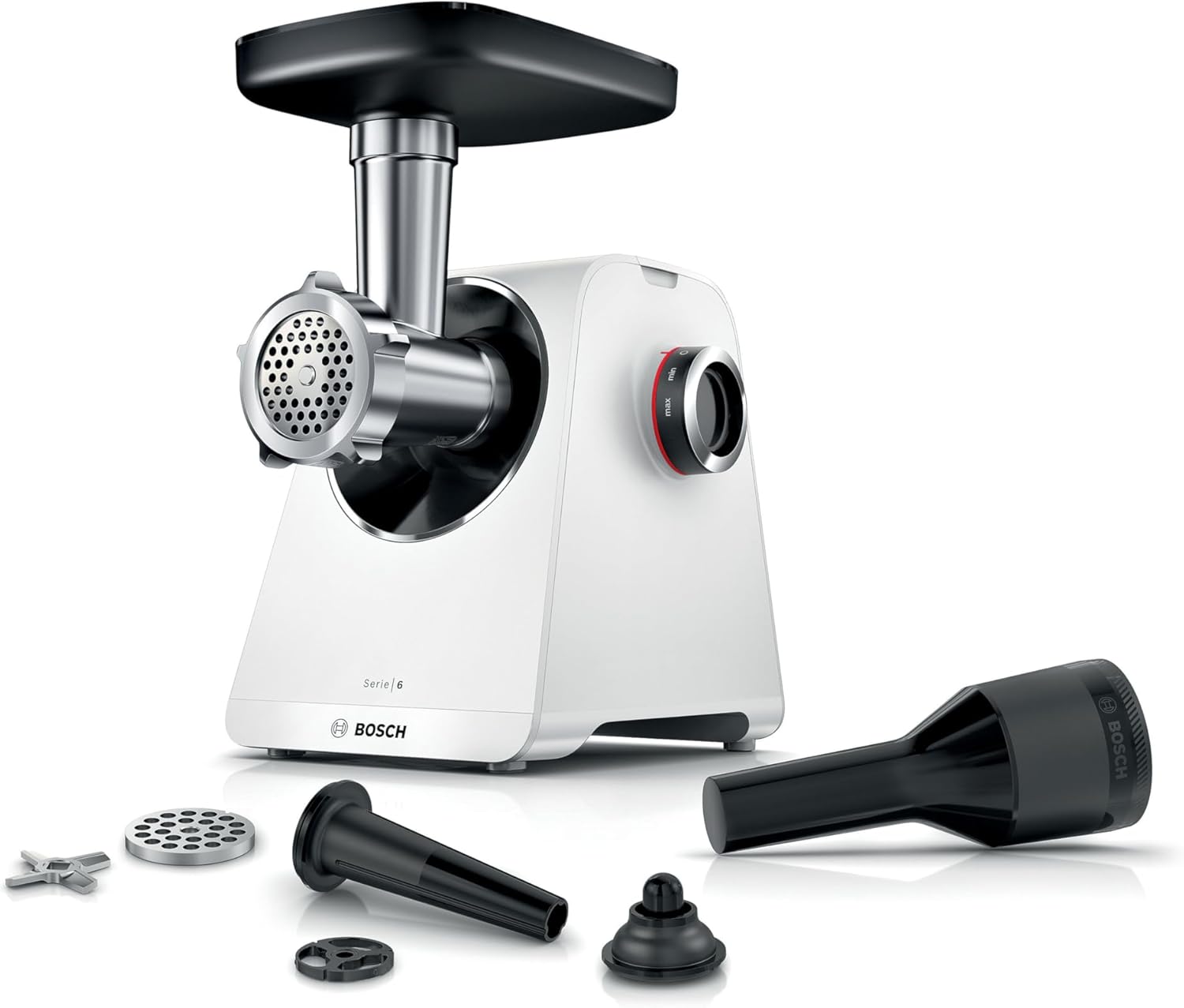 تتيح لك مفرمة اللحم القوية مالتي باور سيريز 6 من بوش مع نظام طاقة – تتكون من كتلة محرك 2100 واط ومعدات كوكبية ووصلة معدنية وسكين مزدوج الحواف – إعداد كميات كبيرة في وقت قصير على الإطلاق. بفضل الحجرة الواسعة، تقوم مفرمة اللحم بمعالجة ما يصل إلى 3.5 كجم من اللحم في الدقيقة. يضمن نظام الطاقة معالجة قوية وفعالة – حتى مع اللحوم الليفية والخضروات الصلبة. الهيكل القوي والحجرة عالية الجودة وأجزاء الطحن الدقيقة تضمن ثباتًا عاليًا وموثوقية وأمان. بالإضافة إلى ذلك، تم تصميم مفرمة اللحم هذه ليتم إصلاحها. سواء كانت لحوم أو سمكة أو خضروات: يمكن معالجة كل شيء وفقًا لتفضيلاتك الخاصة في فطائر البرجر أو كرات اللحم أو الكبة أو النقانق. يتيح لك زر التحكم الاختيار بين إعدادين للسرعة. بفضل وظيفة الإرجاع، يمكن إخراج الطعام المسدود بسهولة. • كتلة محرك قوية بقدرة 2100 واط • سعة عالية: 3.5 باوند من اللحم في الدقيقة • حلول تخزين ذكية • إعدادان للسرعة ووظيفة عكسية • تتضمن: صينية تعبئة، مكبس، قرصين مثقوبين، سكين، ملحق سجق، ملحق كبة