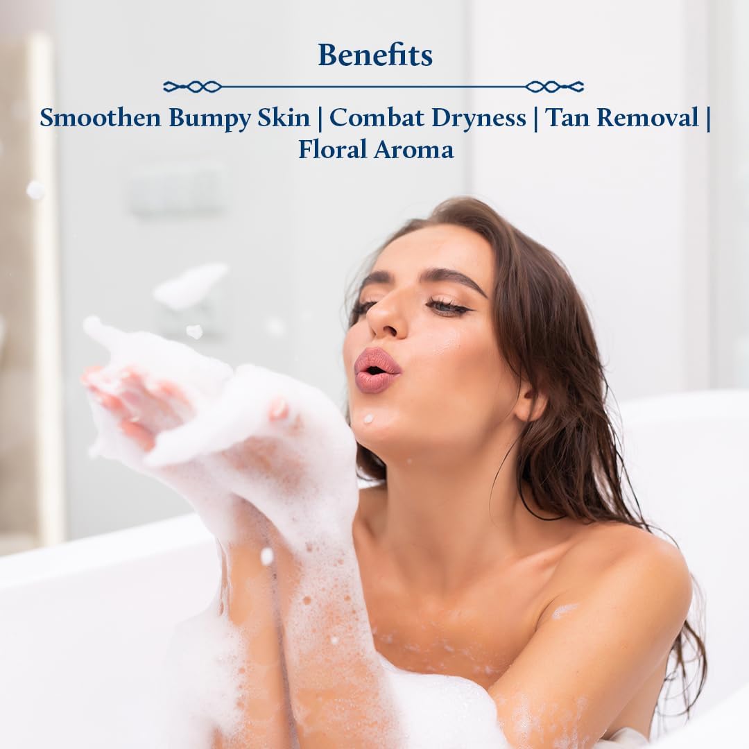 مقشر الجسم للاستحمام: يتميز مقشر الجسم 2 في 1 بعمل تقشير لطيف وفعال يساعد على تحسين مظهر لون البشرة غير المتساوي مما يقلل من رؤية البقع الخشنة والجافة والبشرة الوعرة، مما يترك بشرة متجددة بشكل جميل وجاهزة للتباهي.