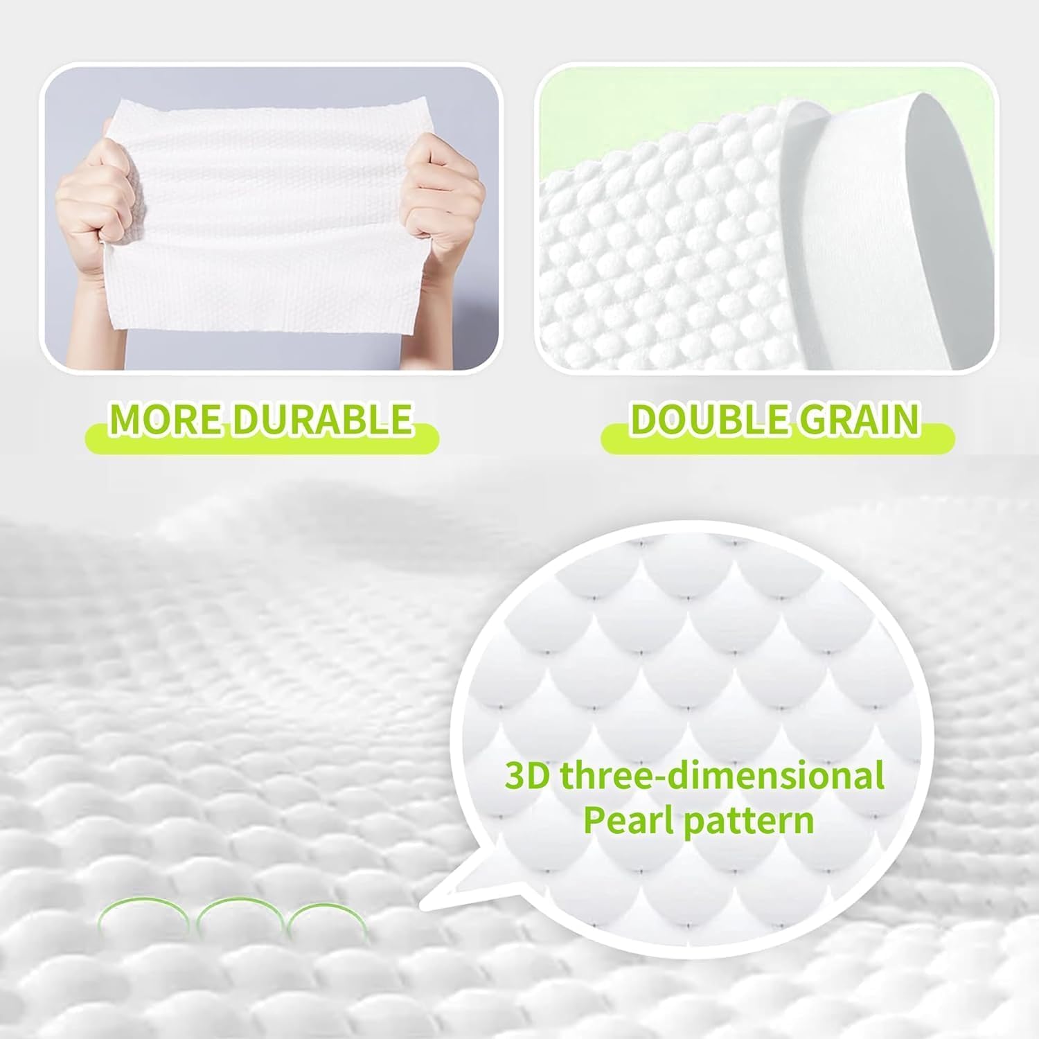 🍃 خامة قطنية نقية ممتازة: مناشف الوجه للاستعمال مرة واحدة مصنوعة من قماش طبيعي قابل للتحلل البيولوجي بنسبة 100%. فائقة النعومة وعالية الامتصاص، يمكن استخدام هذه المناشف رطبة أو جافة، مما يوفر تجربة مستخدم عالية الجودة.