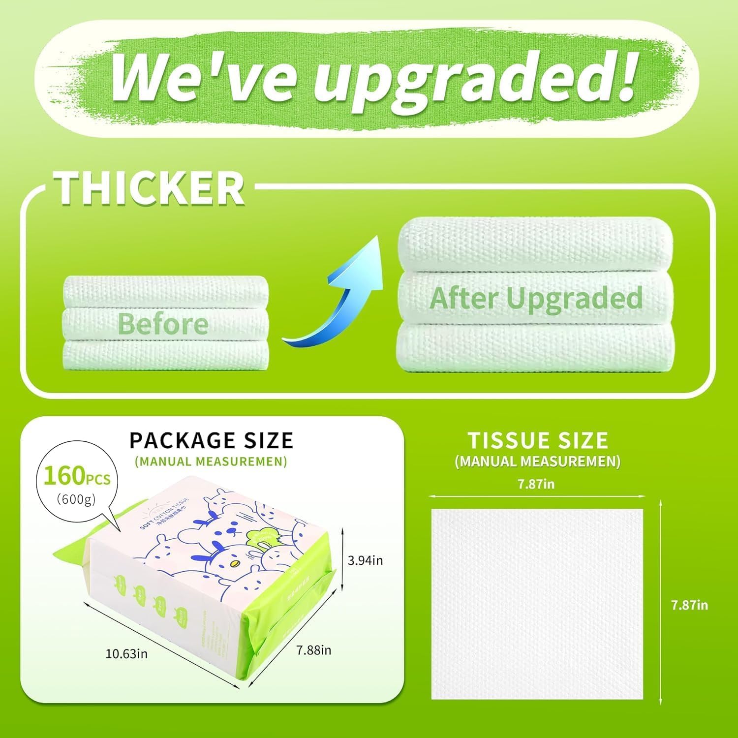 🍃 سُمك وامتصاص معززين: كل منشفة لإزالة المكياج أكثر سمكًا بنسبة 40% من معظم مناشف الوجه. إنها فائقة النعومة ومتينة ويمكن إعادة استخدامها 2-3 مرات. لن تتفكك عندما تكون مبللة، مما يجعلها بديلاً رائعًا لمناشف الوجه العادية.