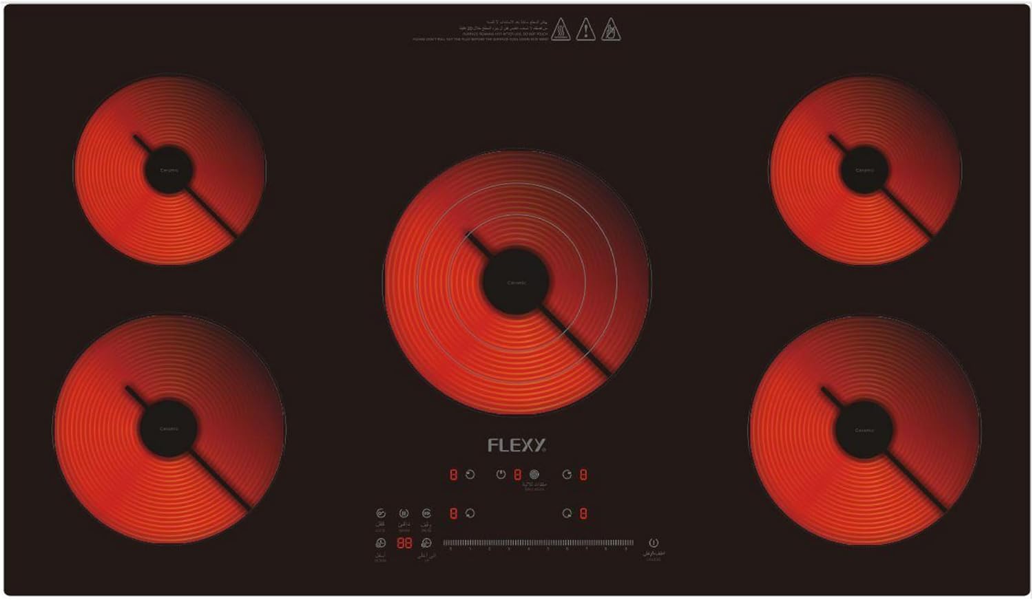 سطح زجاجي سهل التنظيف لسهولة العناية. يعد الحفاظ على مطبخك مرتبًا أمرًا سهلًا مع السطح الزجاجي الأملس لموقد السيراميك بالأشعة تحت الحمراء المكون من 5 شعلات من فليكسي. مصمم للتنظيف بدون مجهود، يسمح لك السطح الزجاجي بمسح الانسكابات أو البقع أو بقايا الطعام بأقل جهد. توفر هذه الميزة الوقت الثمين، خاصة أثناء جلسات الطهي المزدحمة عندما تحتاج إلى تنظيف سريع. يتميز السطح بمقاومته للخدوش والبقع، مما يضمن له الحفاظ على مظهره الأنيق وأدائه المتميز بمرور الوقت. هذه المقاومة تجعله إضافة سهلة الصيانة لمطبخك، حيث يبدو رائعًا ويبقى نظيفًا بكل سهولة.
