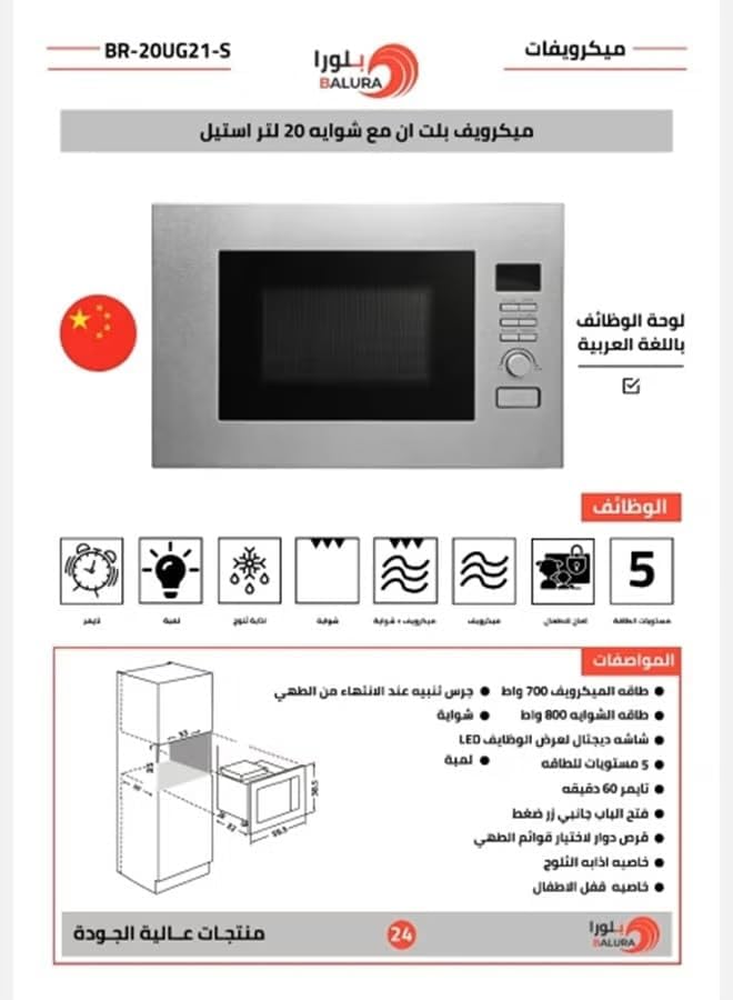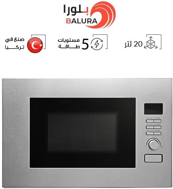 السعة: ميكروويف مدمج واسع سعة 20 لتر مع وظيفة الشواء، مثالي لاحتياجات الطبخ المختلفة في مطبخك.
