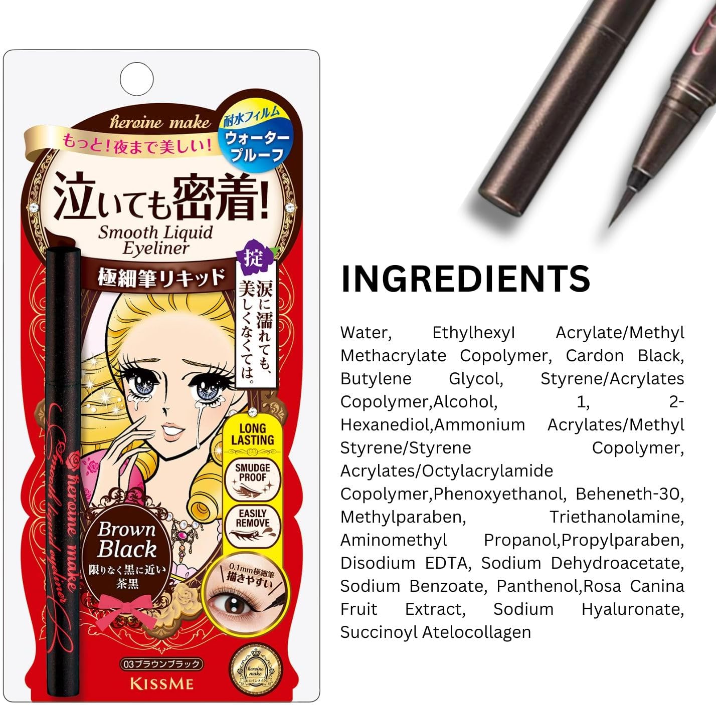 إنه محدد عيون سائل مقاوم للماء للحفاظ على مكياجك جميلًا لفترة طويلة. تسمح الفرشاة الناعمة والدقيقة بالحصول على محدد العيون المجنح المثالي أو النقر للحصول على مظهر عين القطة. يتحمل الدموع والعرق والماء والبشرة الدهنية.