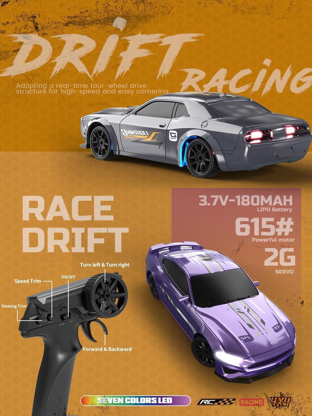تجربة تحكم استثنائية: تستخدم نظام تحكم عن بعد متزامن كامل النطاق بتردد 2.4 جيجاهرتز مع دفع خلفي. تدعم السيارة التحكم الكامل بالتناسب للأمام، والخلف، والانعطافات إلى اليسار/اليمين، والفرملة. مع سرعة قصوى تبلغ 15 كم/ساعة، توفر أداءً رائعًا للانزلاق ويمكن الاستمتاع باللعب بها في الداخل والخارج.