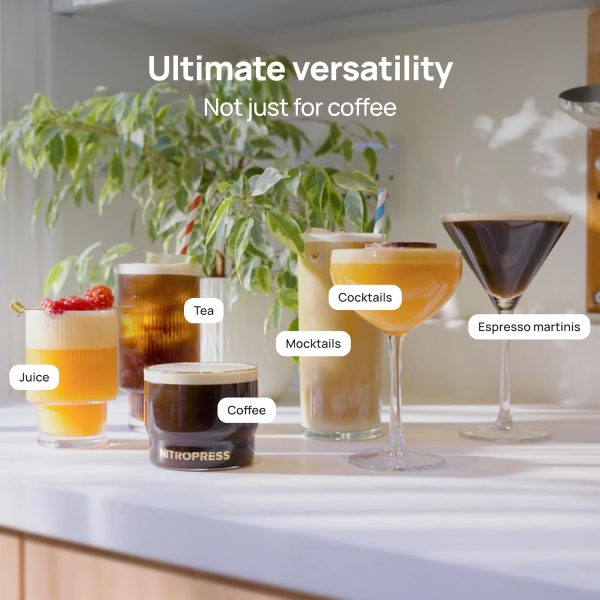 أضف النيتروجين على الفور! يمكن إضافة ملمس الألبان الرغوي والكريمي إلى أي مشروب – بدون منتجات الألبان وبدون سعرات حرارية. فوهة نيترو عالية الضغط حاصلة على براءة اختراع + ضمان لمدة عام