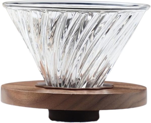 تصميم فريد من نوعه على شكل موجات حلزونية: تصميم دوامة داخلية للزجاج الذي يصب فوق فلتر القهوة يوجه الماء بالتساوي للحفاظ على معدل تدفق مناسب يضمن اختراق الماء بالكامل من خلال القهوة المطحونة لاستخلاص مثالي للنكهة. يساعد الشكل المخروطي على إبراز القهوة بشكل أفضل مع روائح نكهة الزهور أو الفاكهة. تسمح الأضلاع الحلزونية بأقصى قدر من التمدد للقهوة، يناسب المنقط معظم الحاويات بما في ذلك الأكواب وأكواب القهوة والأكواب الزجاجية. اللون: شفاف، المقاس: 12×9.5×9.5 سم، المادة: زجاج البوروسيليكات والجوز والسيليكون الآمن غذائيًا، كمية المنتج: 1