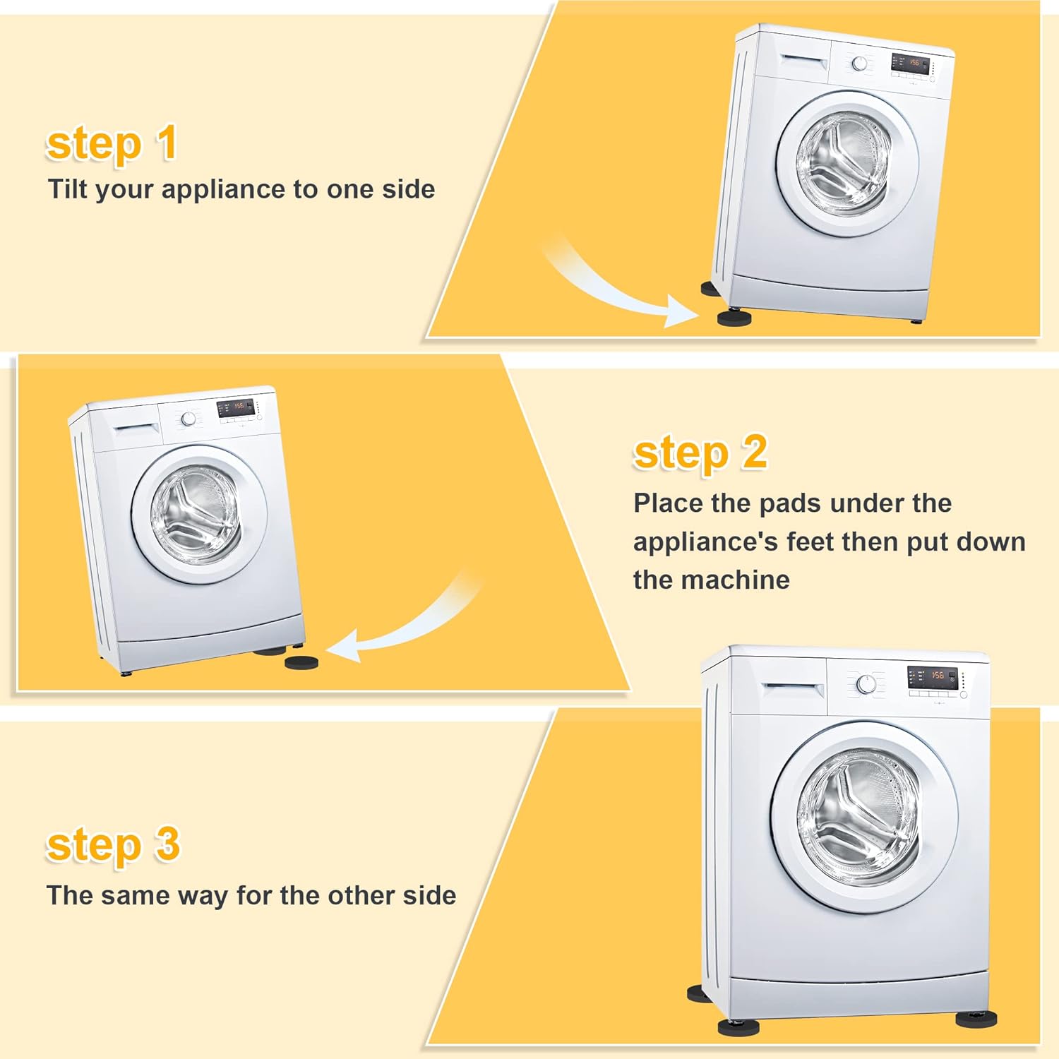 تمتص وساداتنا المضادة للاهتزاز الاهتزازات، وتقلل الضوضاء الناتجة عن الانزلاق وحركة الغسالة أو المجفف في غرفة الغسيل
