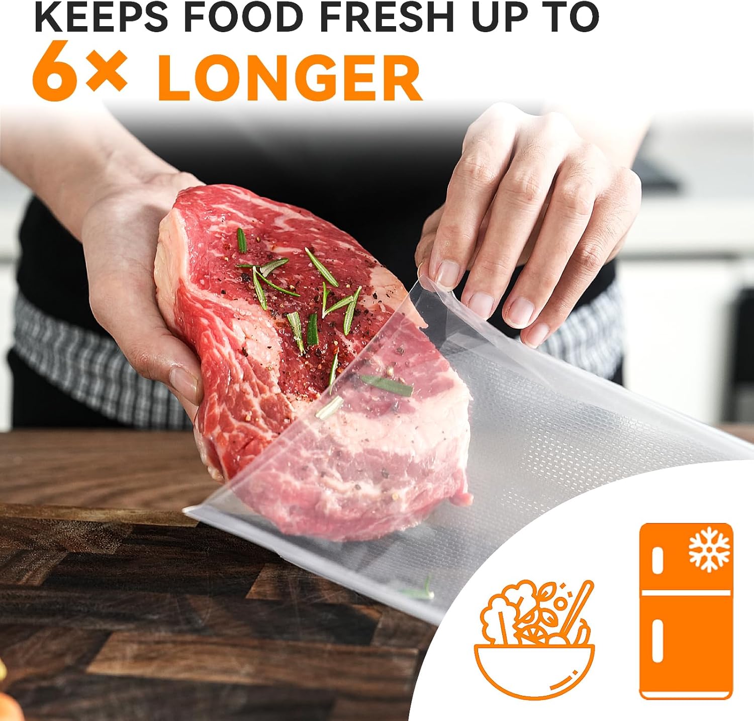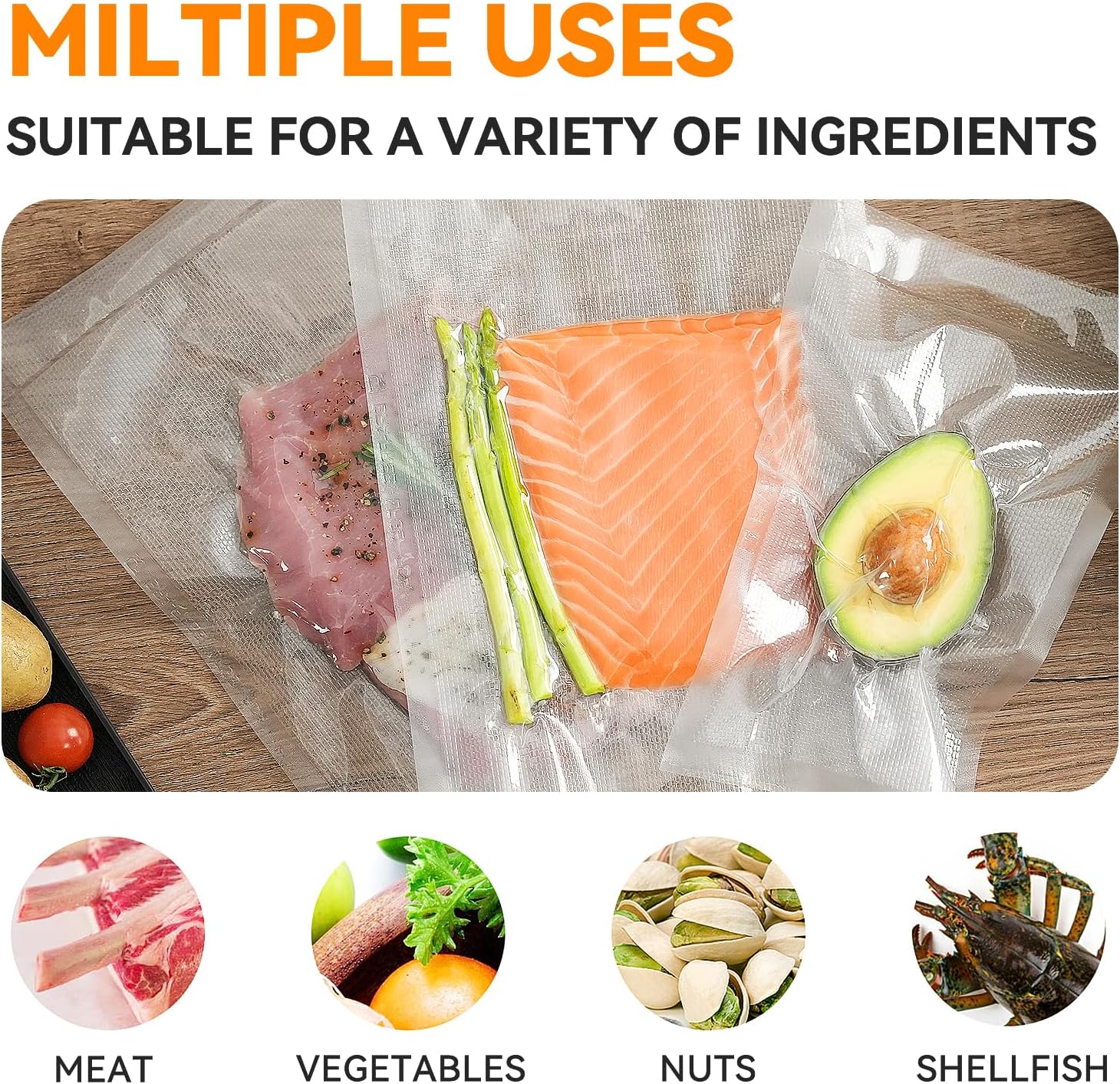 مقاس فردي مثالي – تأتي مع 50 كيس مريح مقاس 8 انش × 12 انش، مثالية للتحكم في الكميات أو الوجبات العائلية أو قطع أكبر من اللحوم والخضروات.