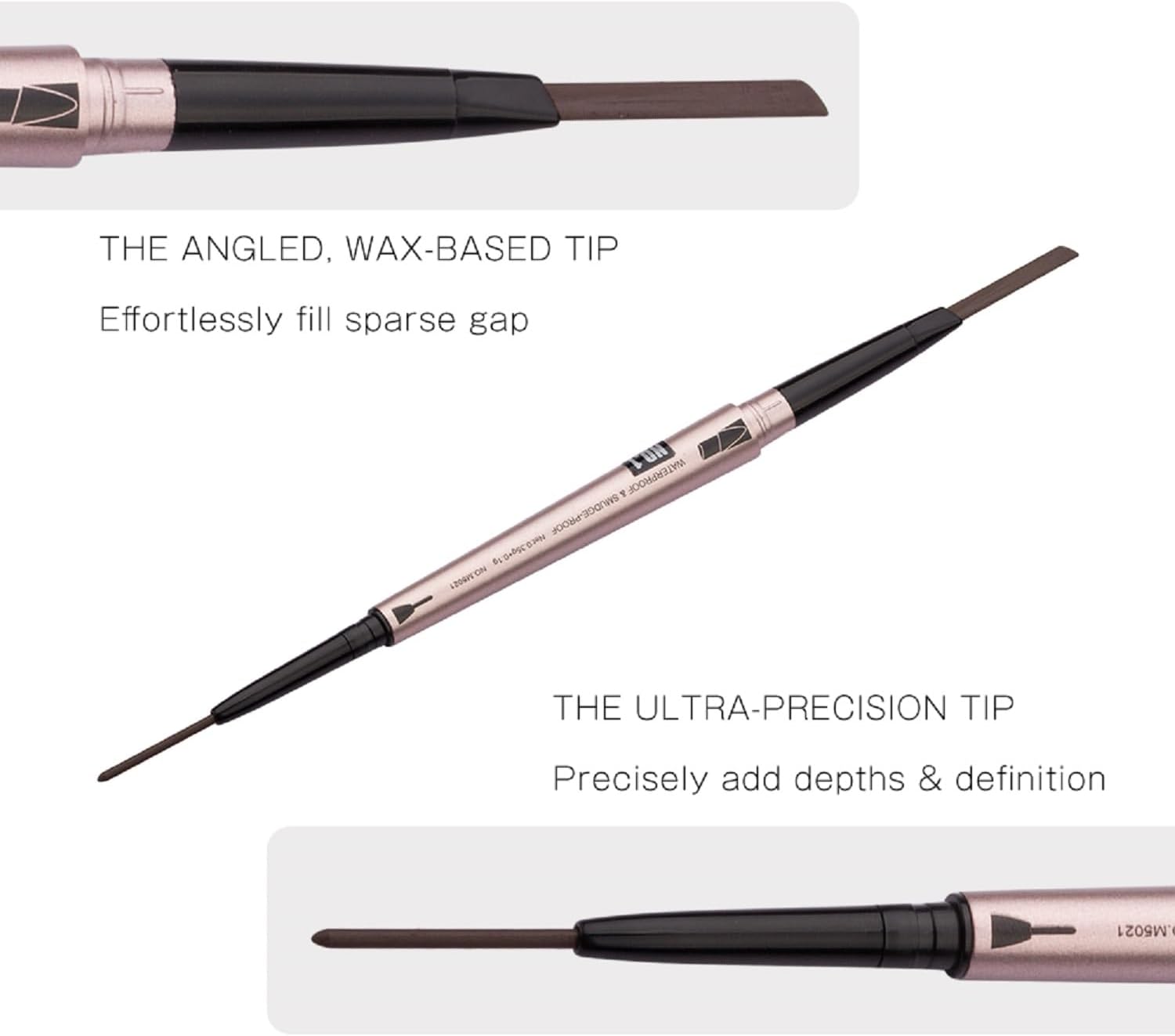 [SPECIAL DOUBLE-HEADED DESIGN] The dual-ended mechanical eyebrow pencil features one ultra-fine, 1.5mm tip and one angled, wax-based tip. The precision end glides effortlessly through hairs and adds depth and definition to your arches to expertly frame your face. The angled tip uses the flat edge for a soft, diffused finish that fills sparse gaps with a natural looking color.