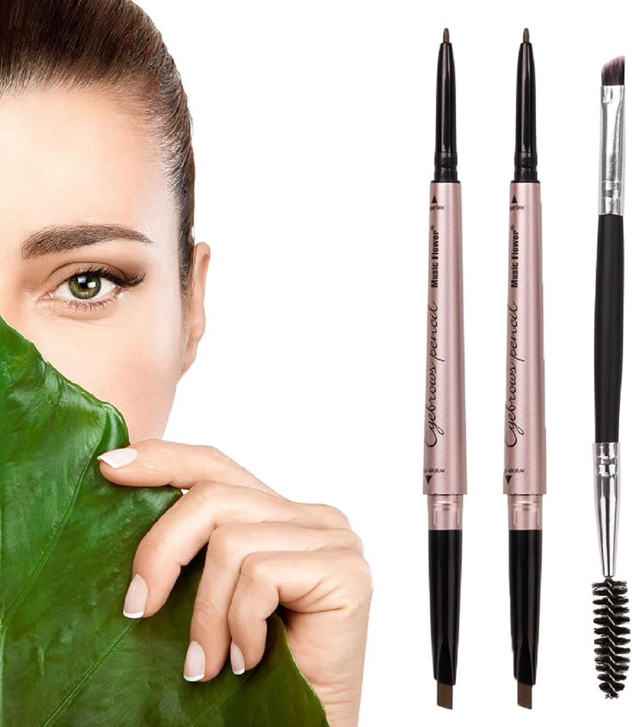 [3 in 1 EYEBROW SET] 2 double-ends eyebrow pencils and a dual tipped brush in this magic eyebrow makeup set. The smart design features two highly pigmented ends that enhance and define the natural shape of your brows, whilst the included brush allows for effortless blending. Create the brows you have always longed for with Professional Makeup Eyebrow Pencil Set.