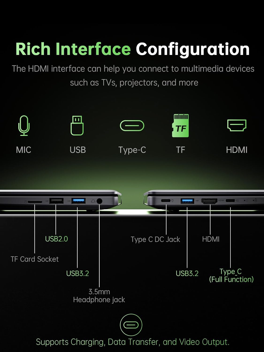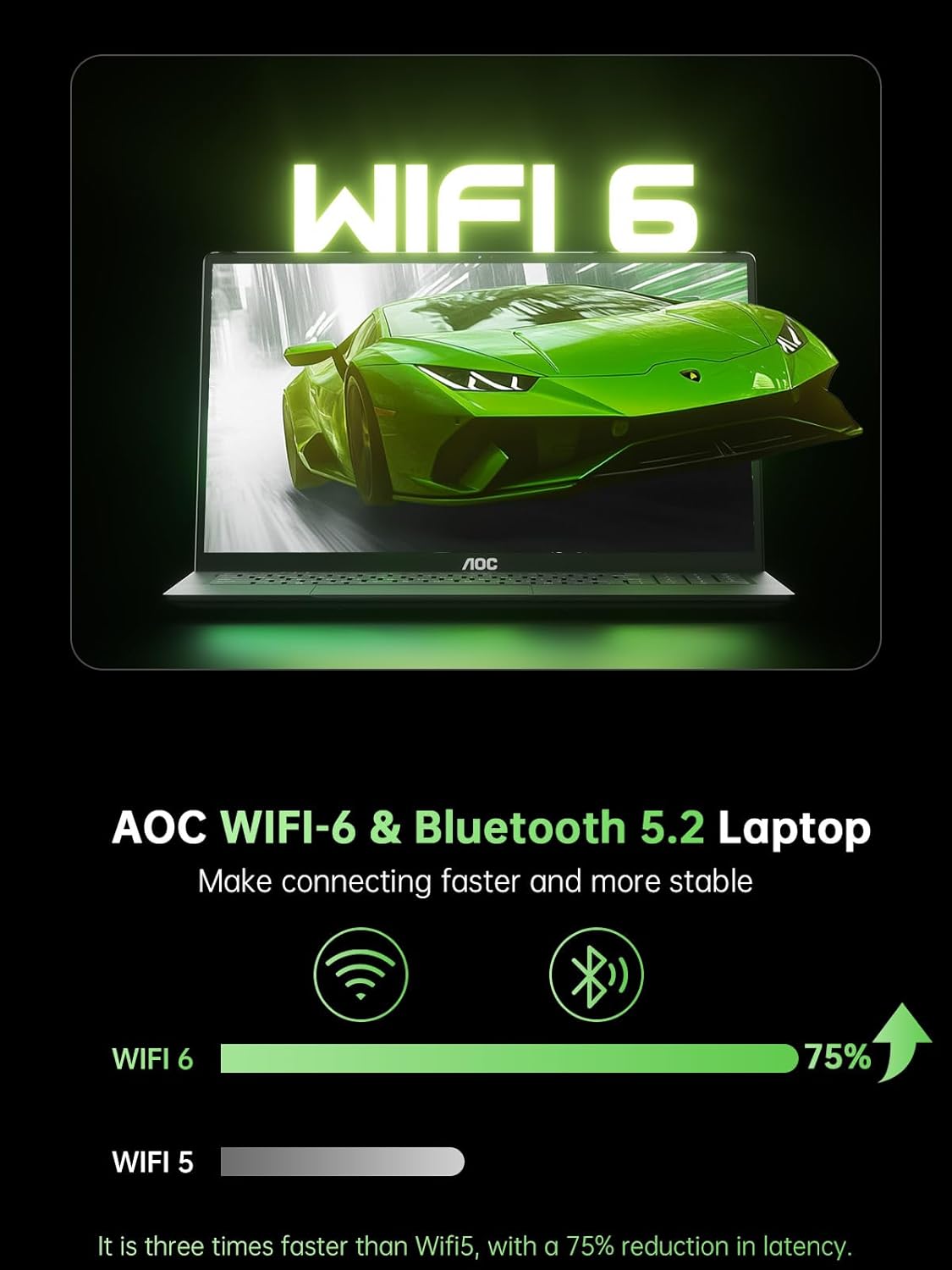 PORTS FOR ALL YOUR ACCESSORIES — The AOC Laptop is outfitted with a comprehensive array of ports to cater to all your needs: a webcam, two USB 3.2 ports, HDMI, a full-function Type-C, a 3.5mm headphone/speaker/line-out jack, a TF card slot, and a Type-C DC jack. With Wi-Fi 6(up to 3x faster than Wi-Fi 5.), you’ll enjoy blazing-fast internet speeds. The backlit keyboard doesn’t just look good—it deepens your experience, turning every session into an epic journey.