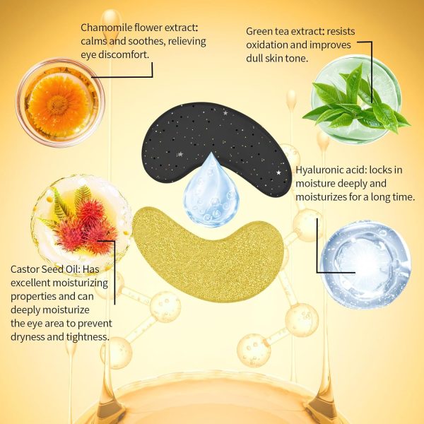 🌙【دعم فائق للهالات السوداء】توفر رقع تحت العين الخاصة بنا دعمًا فعالًا للهالات السوداء تحت العين. تساعد رقع العين الجل هذه الغنية بالكولاجين المتحلل على تقليل مظهر الانتفاخ والتجاعيد، مما يجعلها أفضل رقع تحت العين للهالات السوداء ومظهر منعش.