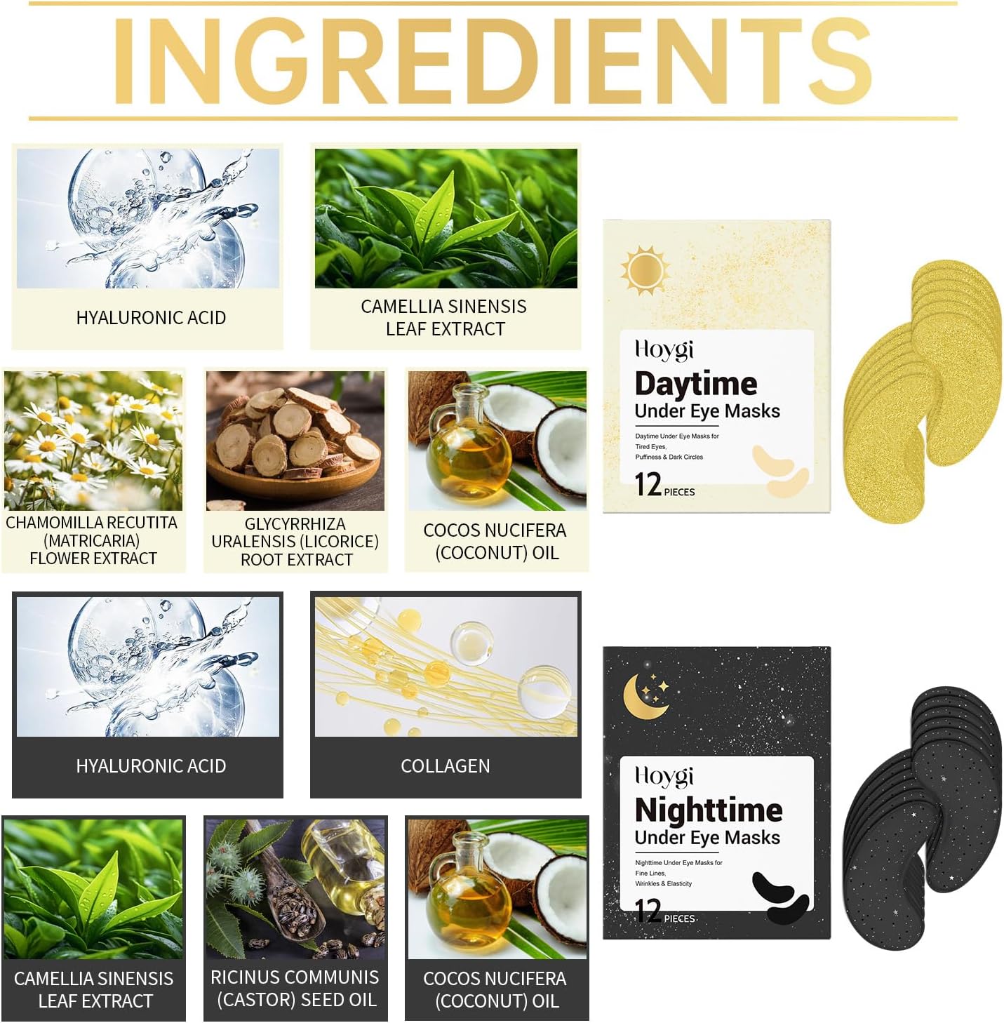 🌙【رقع تحت العين مزدوجة الدعم】رقع النهار الخاصة بنا غنية بحمض الهيالورونيك والكولاجين ومستخلص الشاي الأخضر وزيت بذور الخروع وزيت جوز الهند وزيت البذور وزيت جوز الهند، بينما تتميز الرقع الليلية بحمض الهيالورونيك ومستخلص الشاي الأخضر وخلاصة الأقحوان ومستخلص جذور عرق السوس وزيت جوز الهند للحصول على محيط مظلم شامل. دعم تحت العين العناية بالانتفاخ.